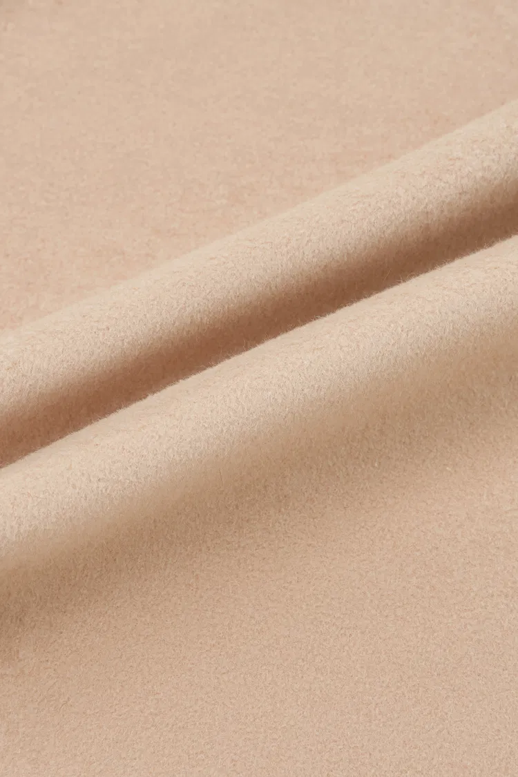 Perfect harmony of Merino wool and baby alpaca. Double-faced fabric for superior loft and coziness. Plush texture that's surprisingly lightweight. Soft camel hue exudes quiet luxury.