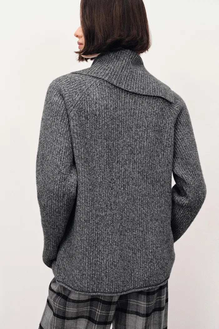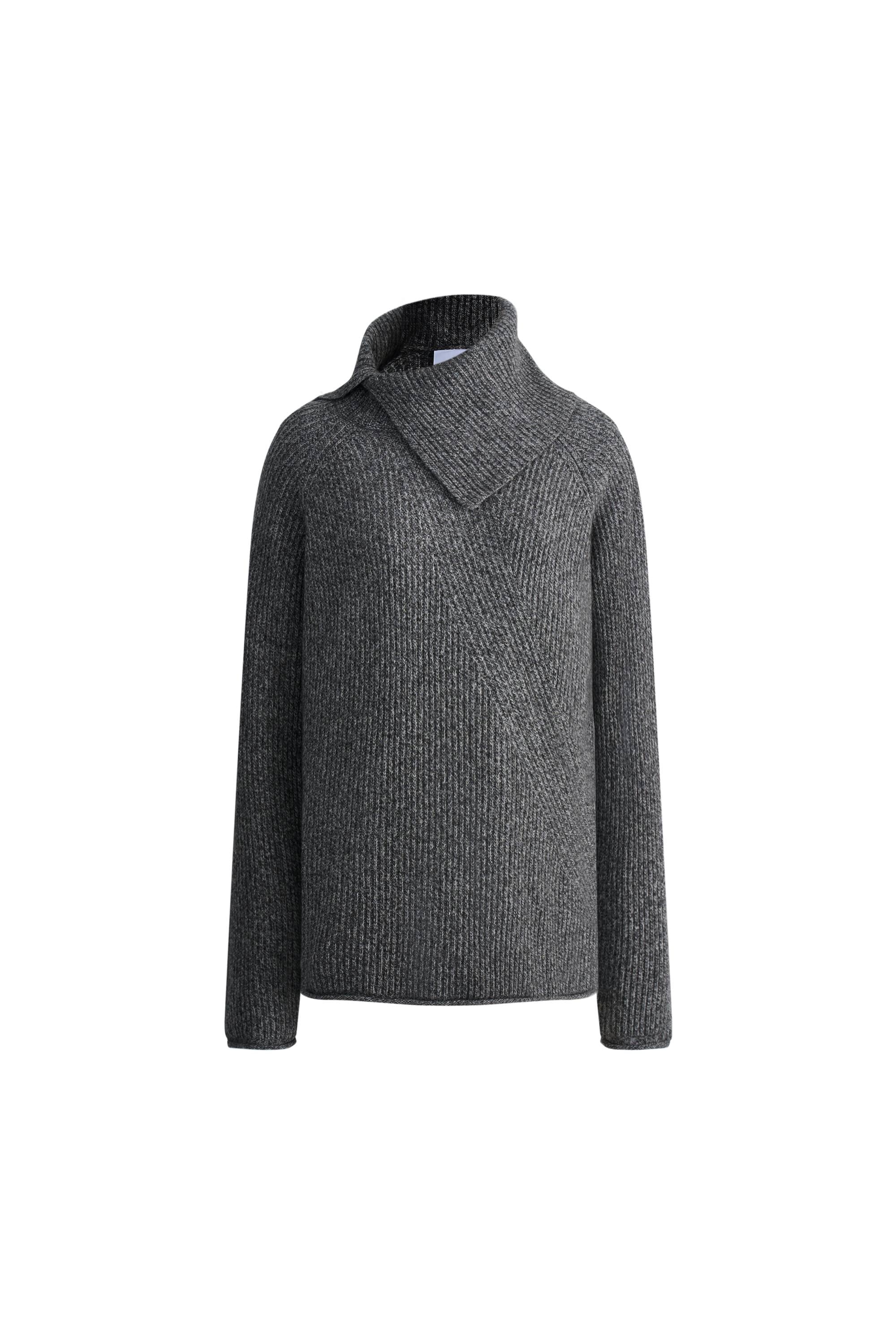 Hannah Asymmetrical Scarf Collar Sweater in Yak Down Knit