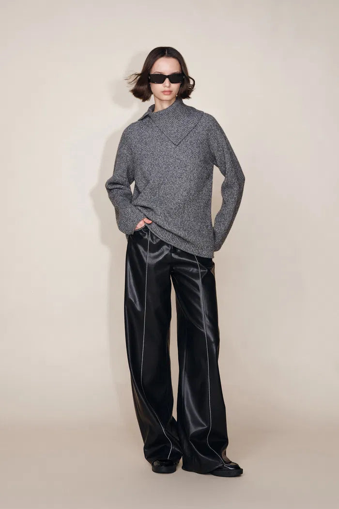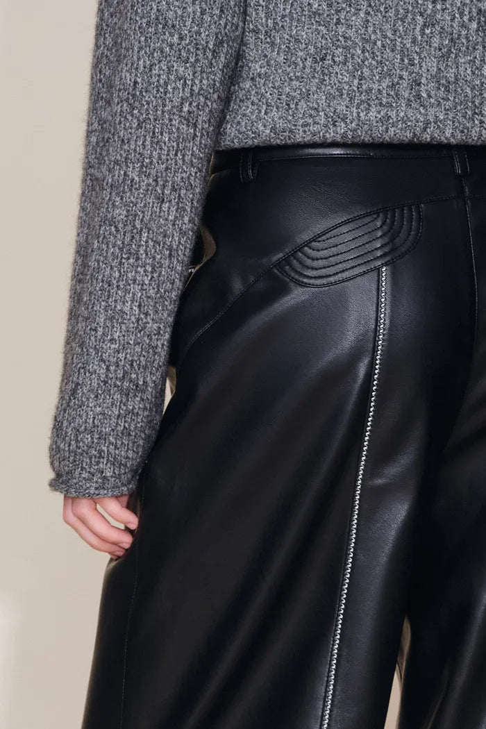 Iris Quilted Contrast Stitching Pants in Faux Leather