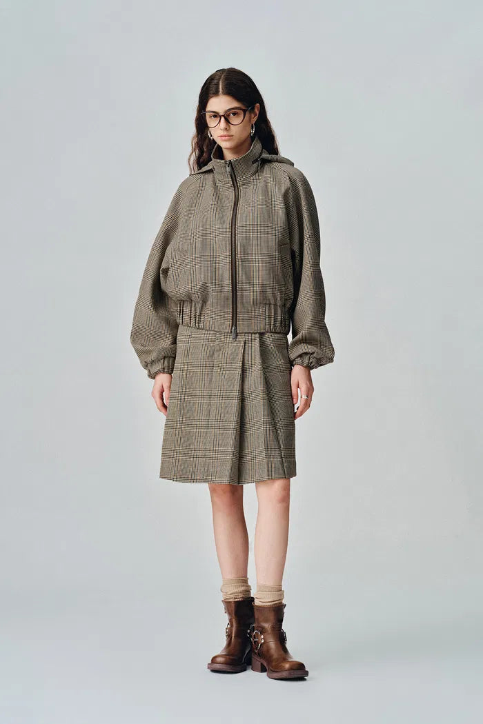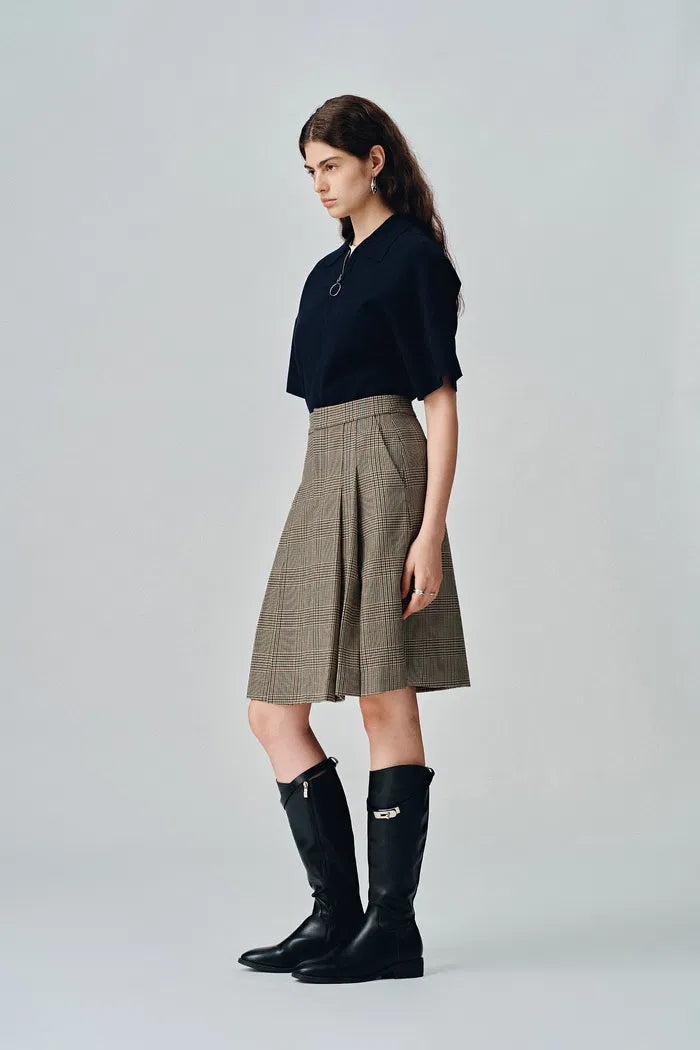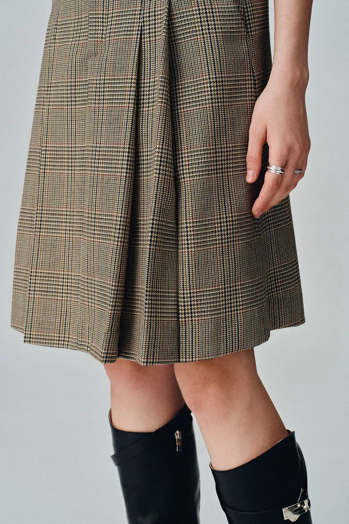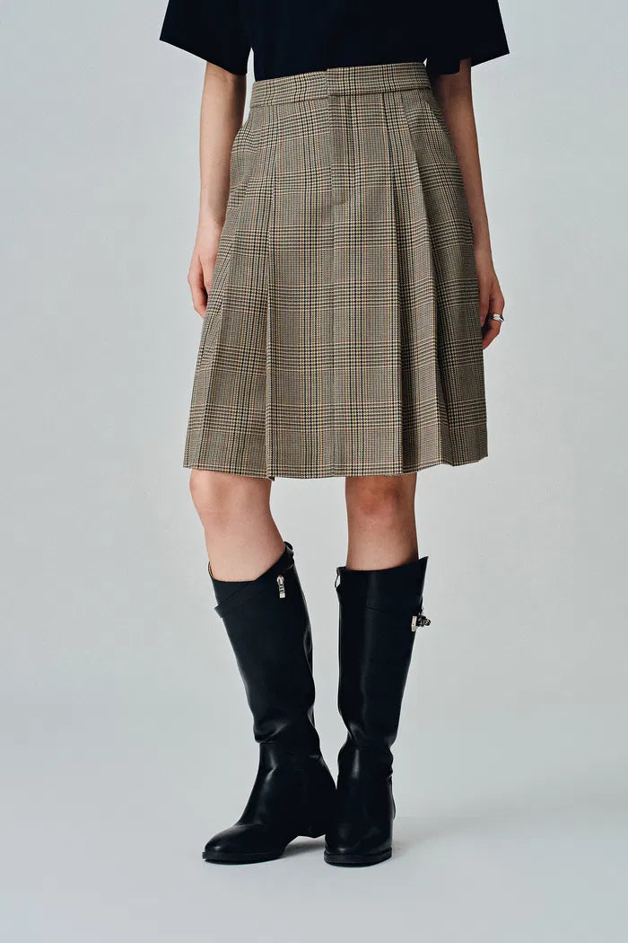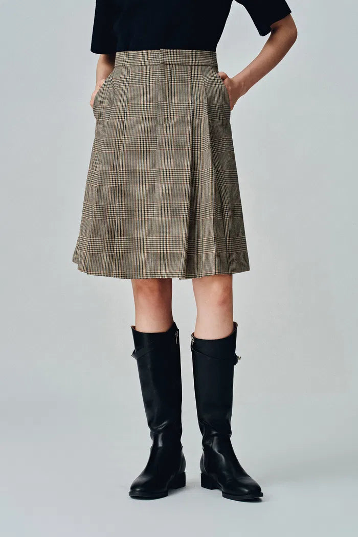 Javia Plaid Pleated Skirt in Prince of Wales Merino Wool