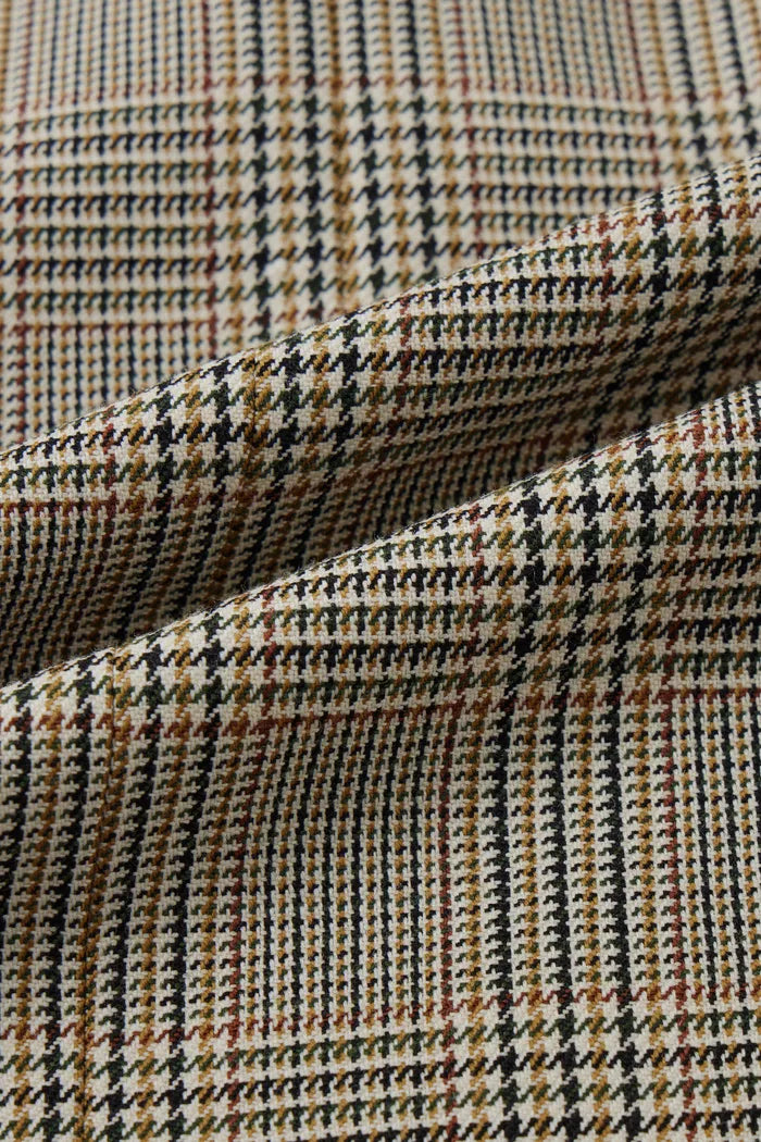 Classic Welsh check in Australian Merino blend. Carefully balanced color combination. Semi-worsted for soft touch. Easy-care with wrinkle resistance. Perfect balance of vintage style and practicality.