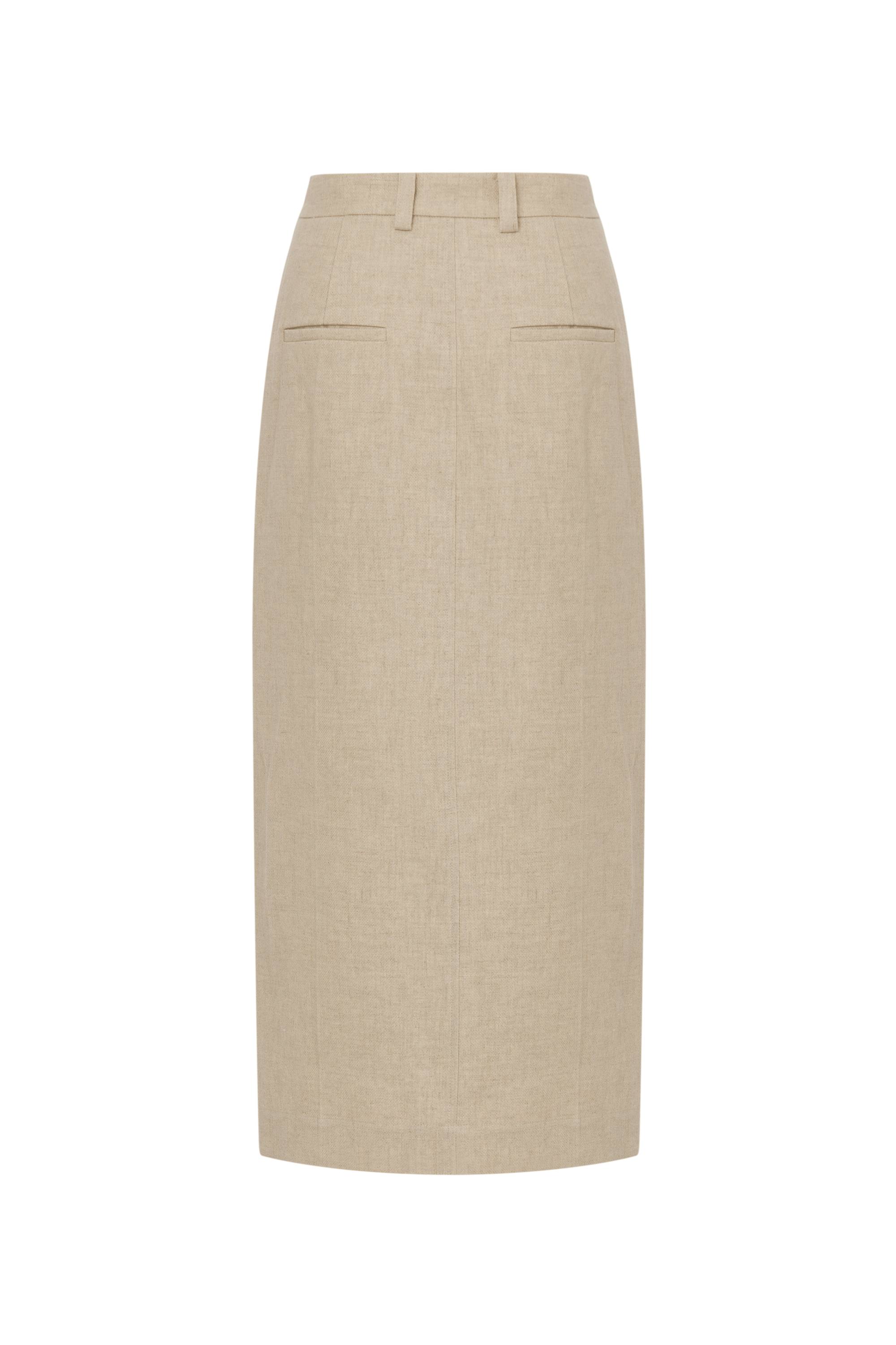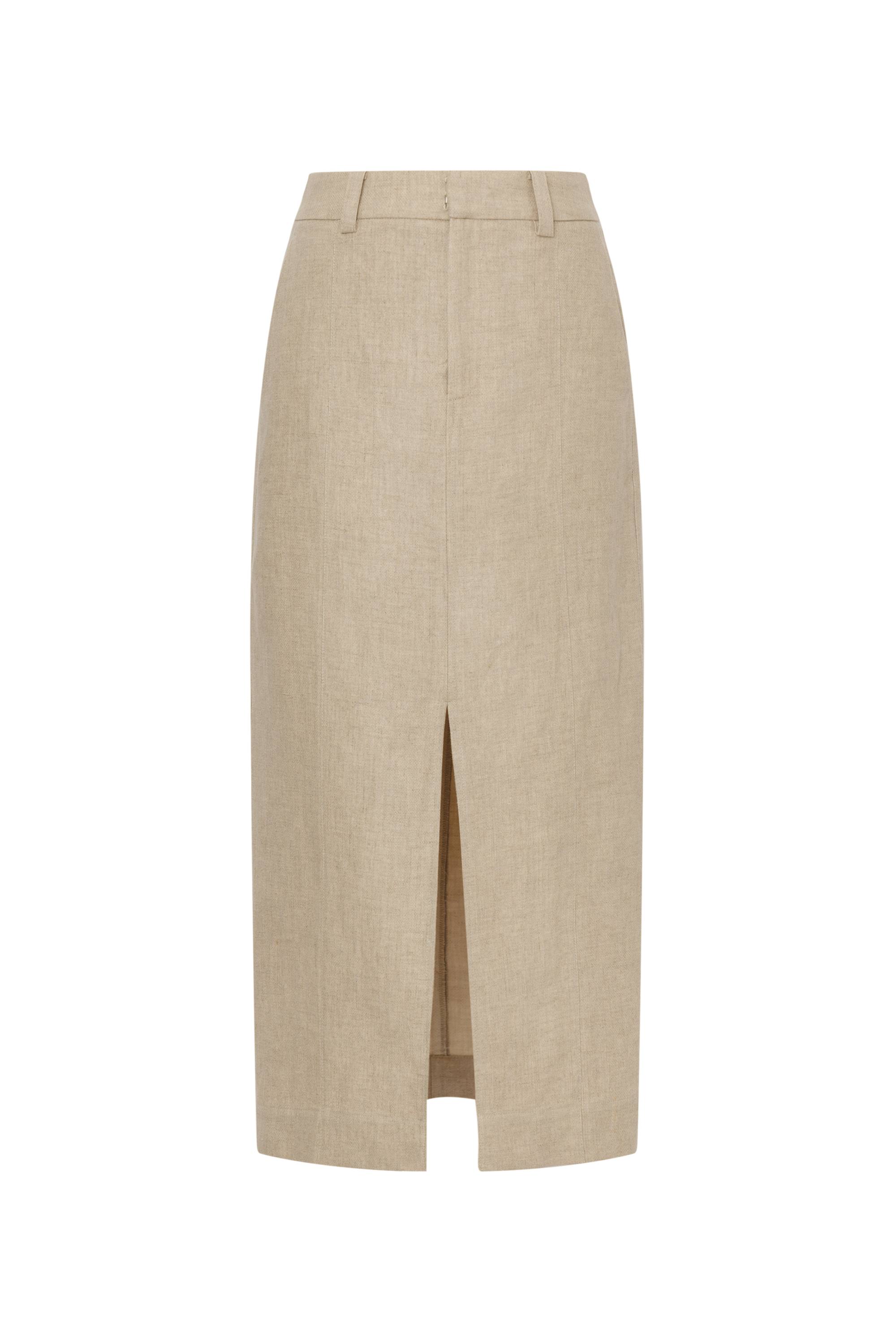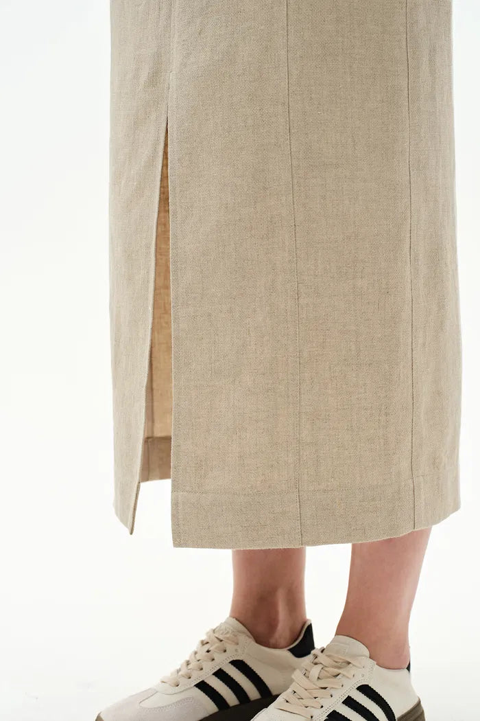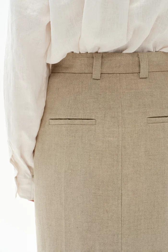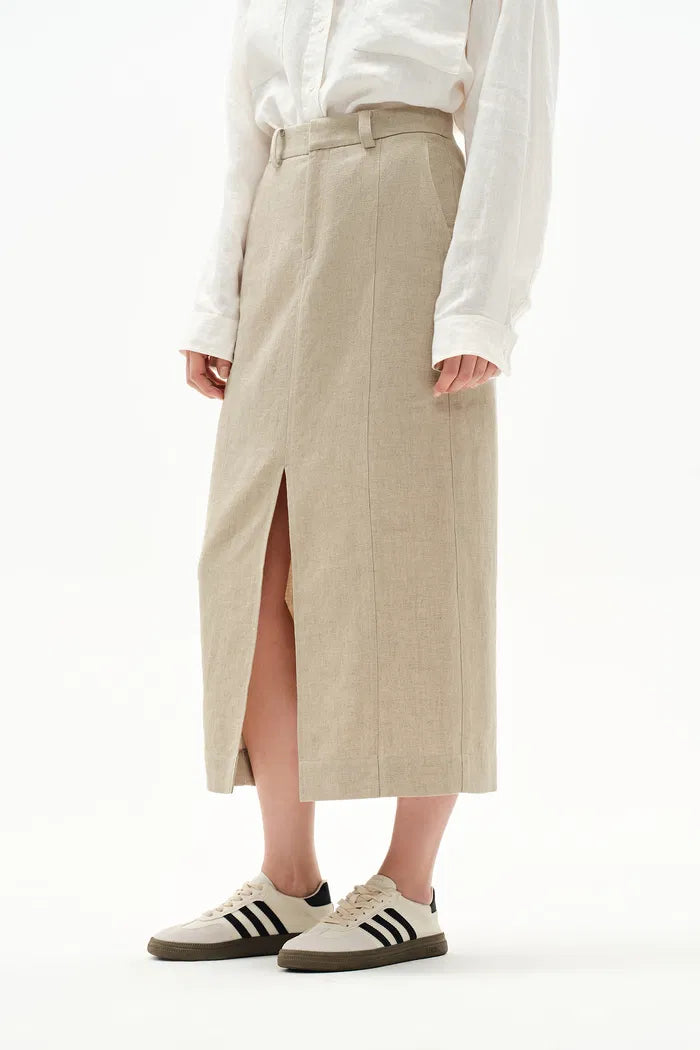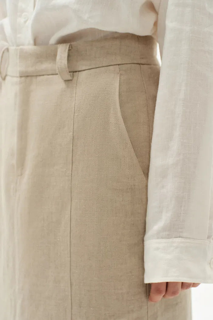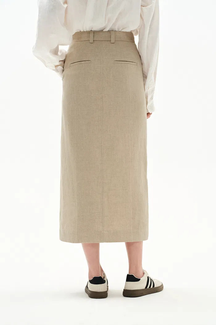 Lauren High Rise Midi Skirt in Dew Retted French Linen