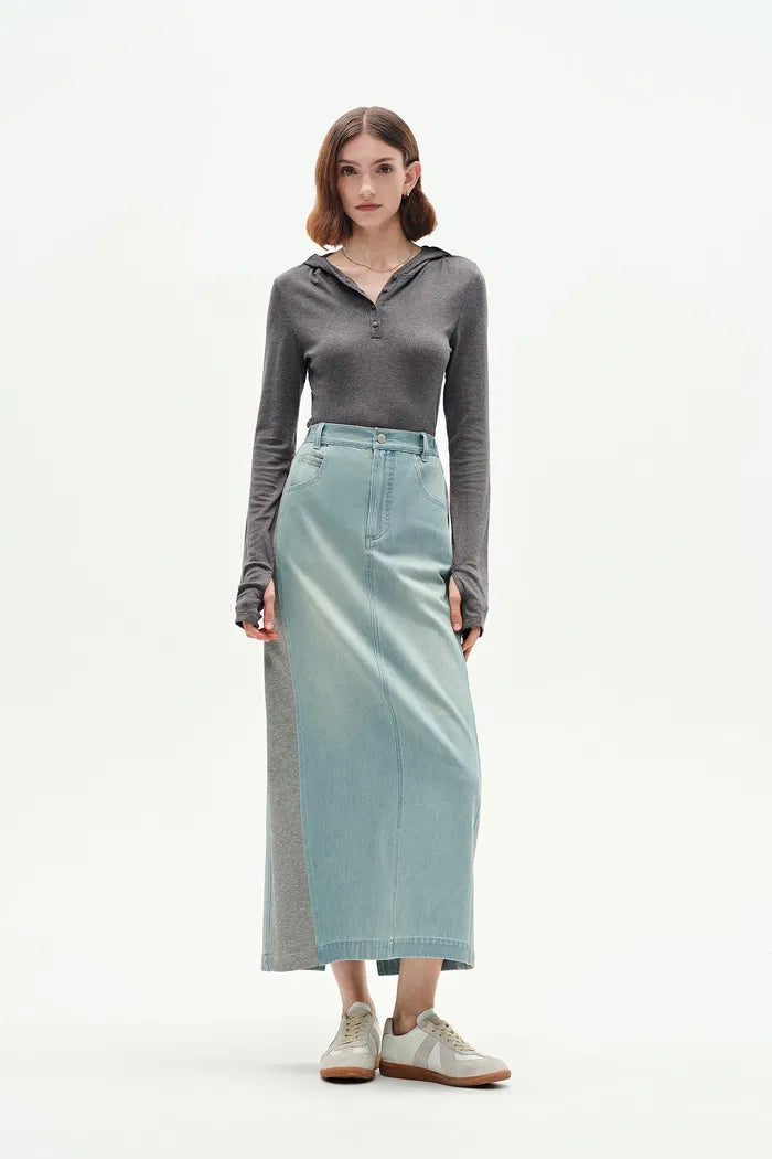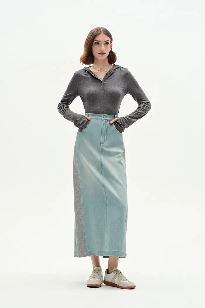 Mermaid Midi Skirt in Cotton Jersey Denim