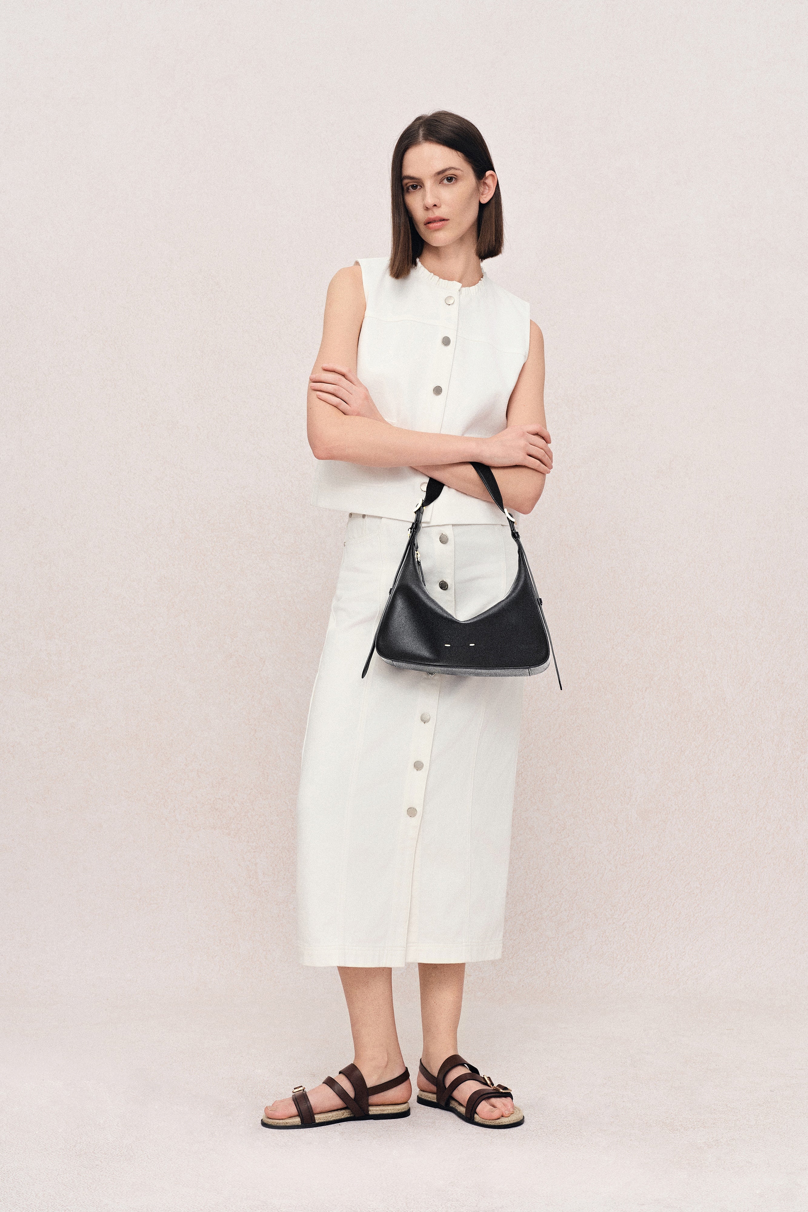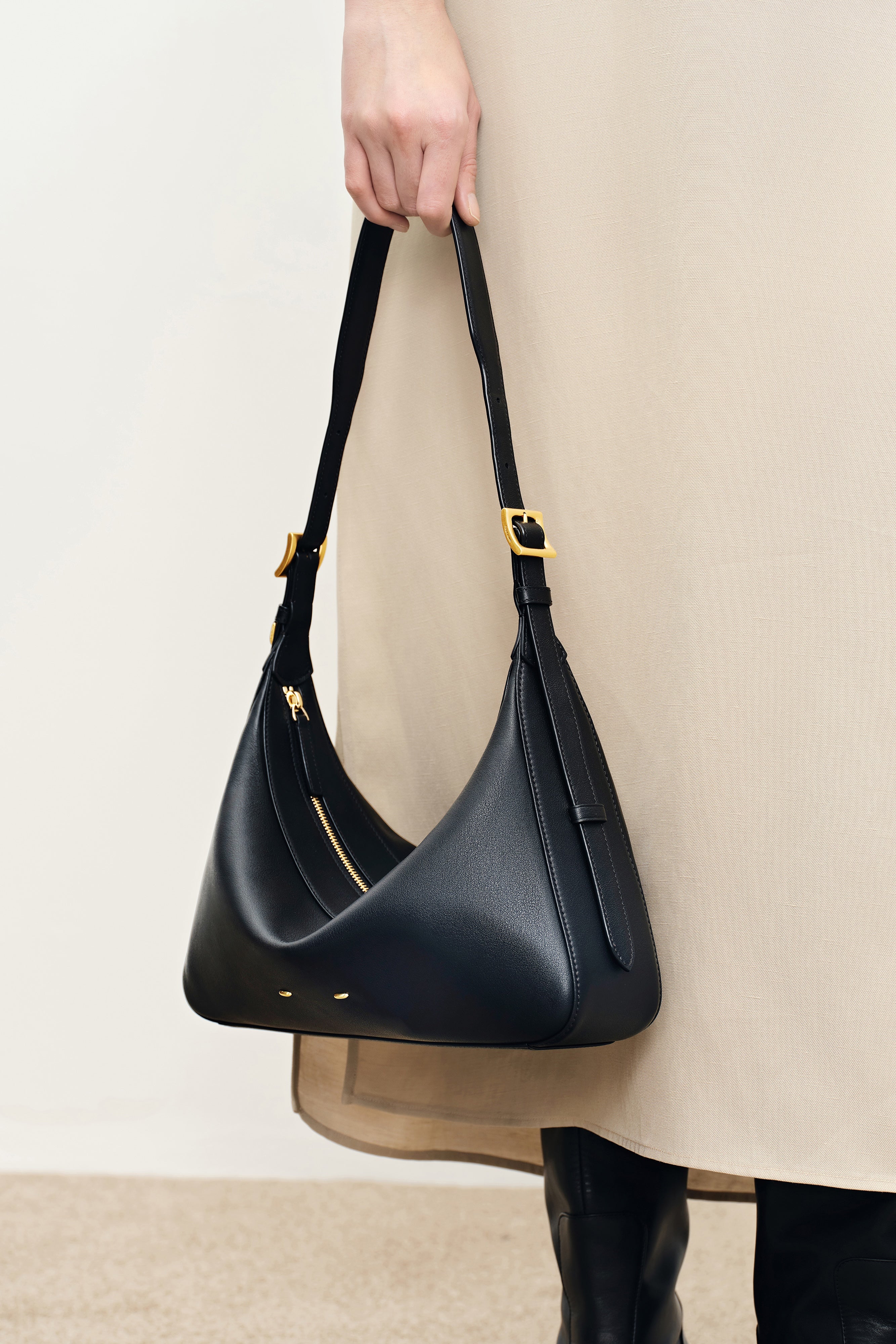 Inspired by Milan’s historic Navigli canals, this hobo bag captures the tranquil flow of water and the city’s vibrant markets. The soft yet sculpted silhouette forms a natural V-shaped drape that transforms into a fuller baguette when filled, shifting gracefully with every strap adjustment—effortlessly moving from laid-back strolls to elegant appointments.