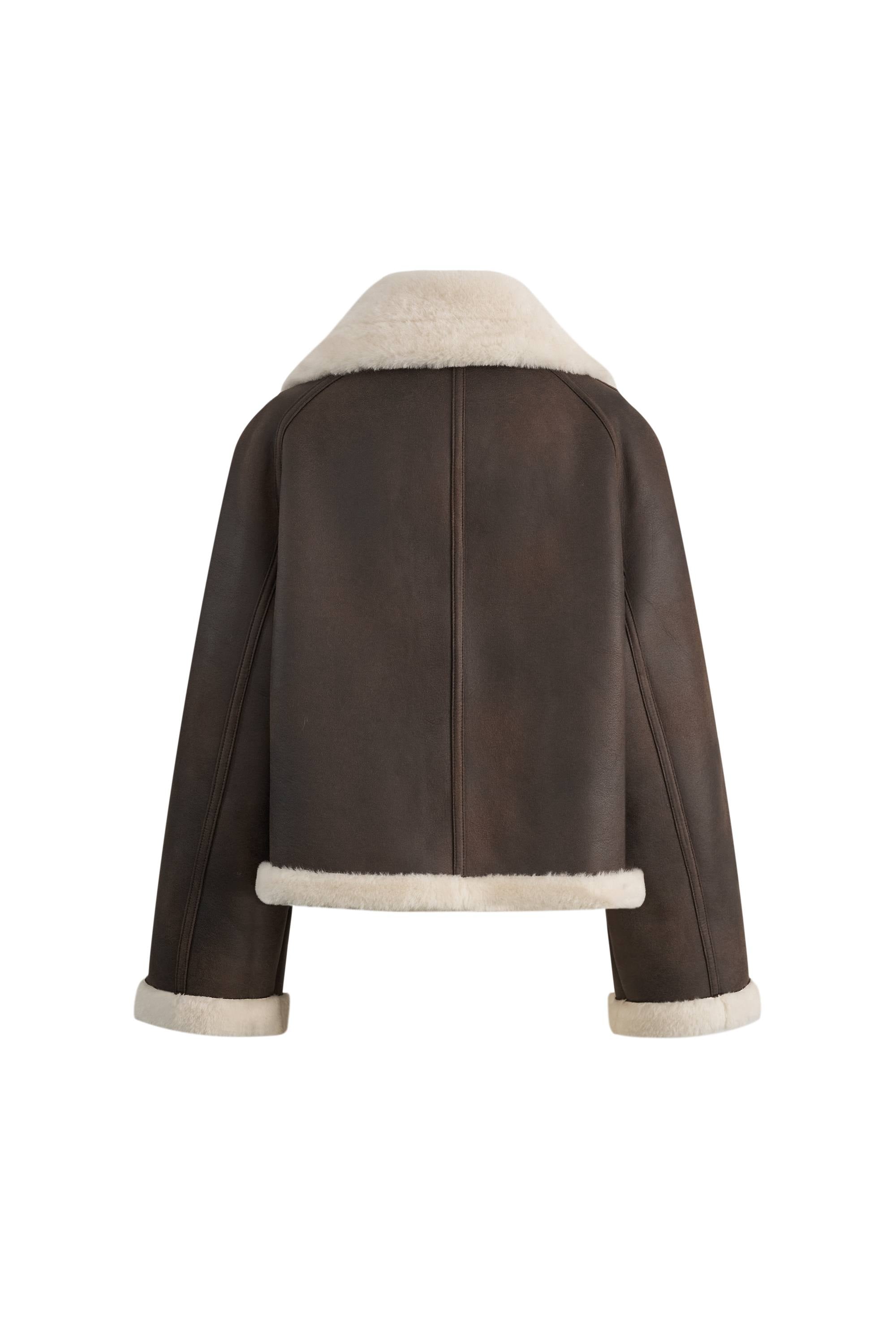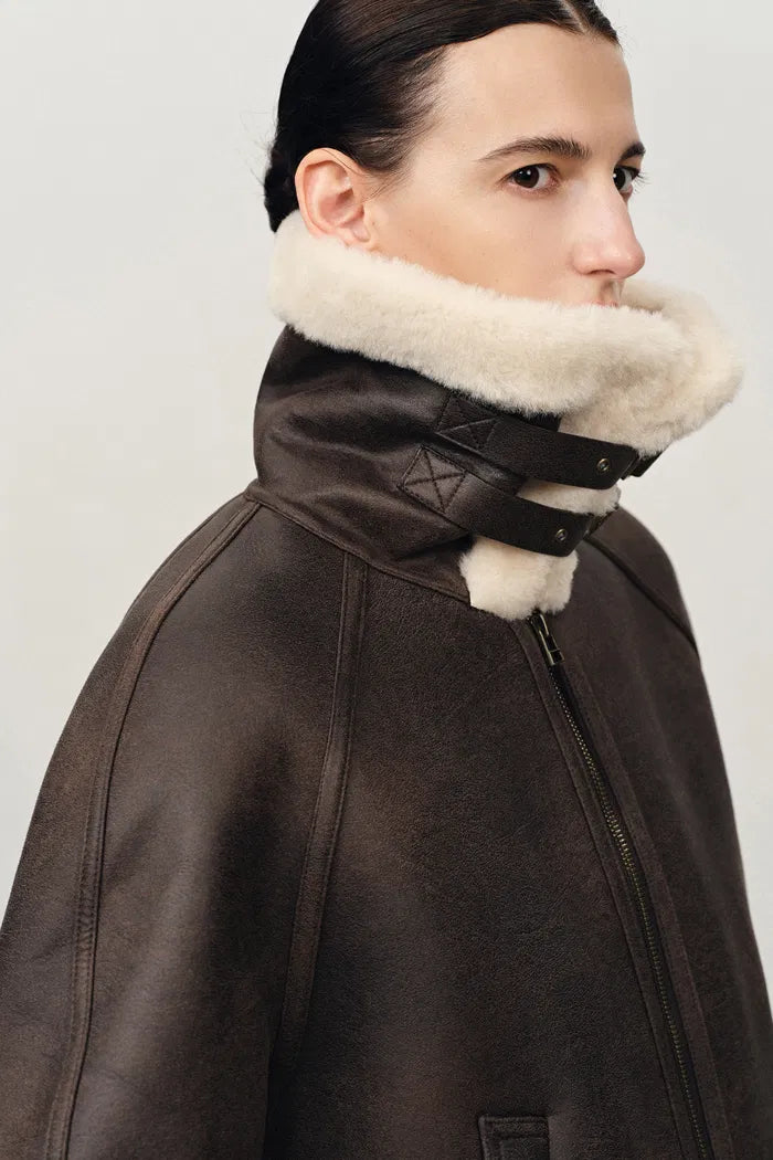 Composite shearling provides authentic texture while A-line crop proportions designed to flatter. Raglan construction ensures comfortable movement while maintaining the nomadic luxury aesthetic. The interior fleece wraps you in cloud-like softness that's impossibly plush and silky smooth.