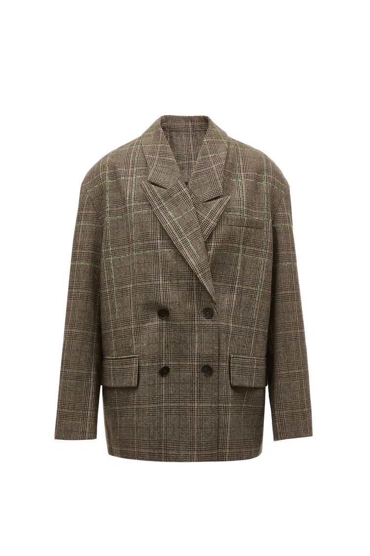 Seera Detachable Collar Plaid Blazer in Wool Blend