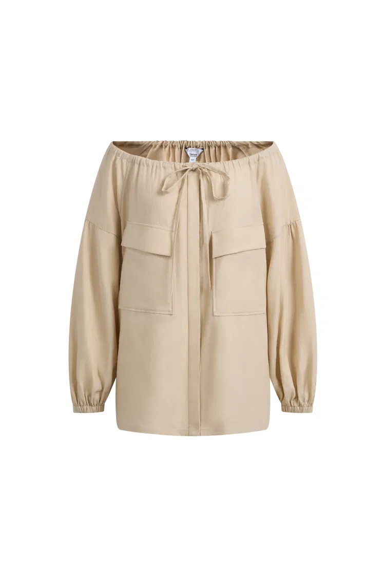 Alano Adjustable Off-Shoulder Shirt in Thin Denim