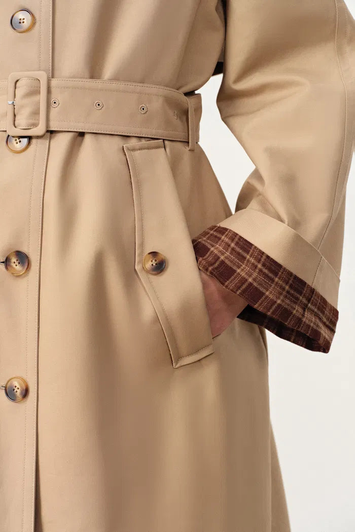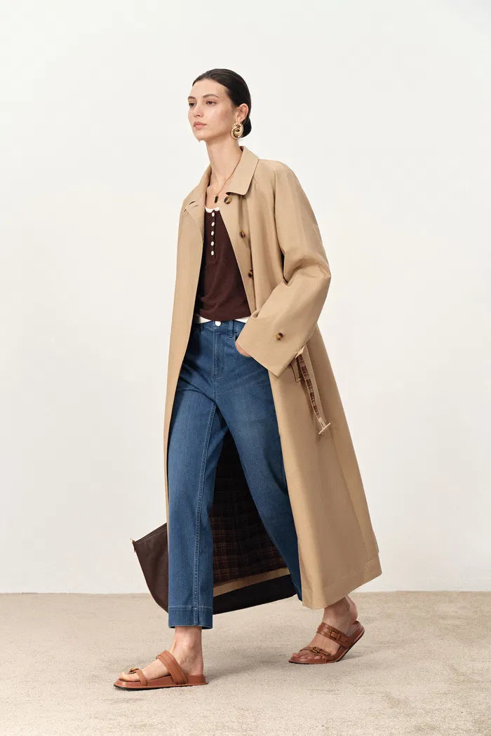 Barga Single Breasted Long Trench Coat in Cotton