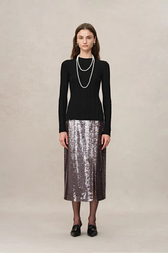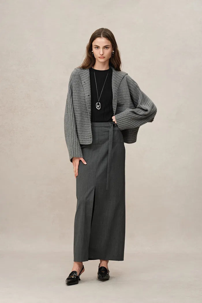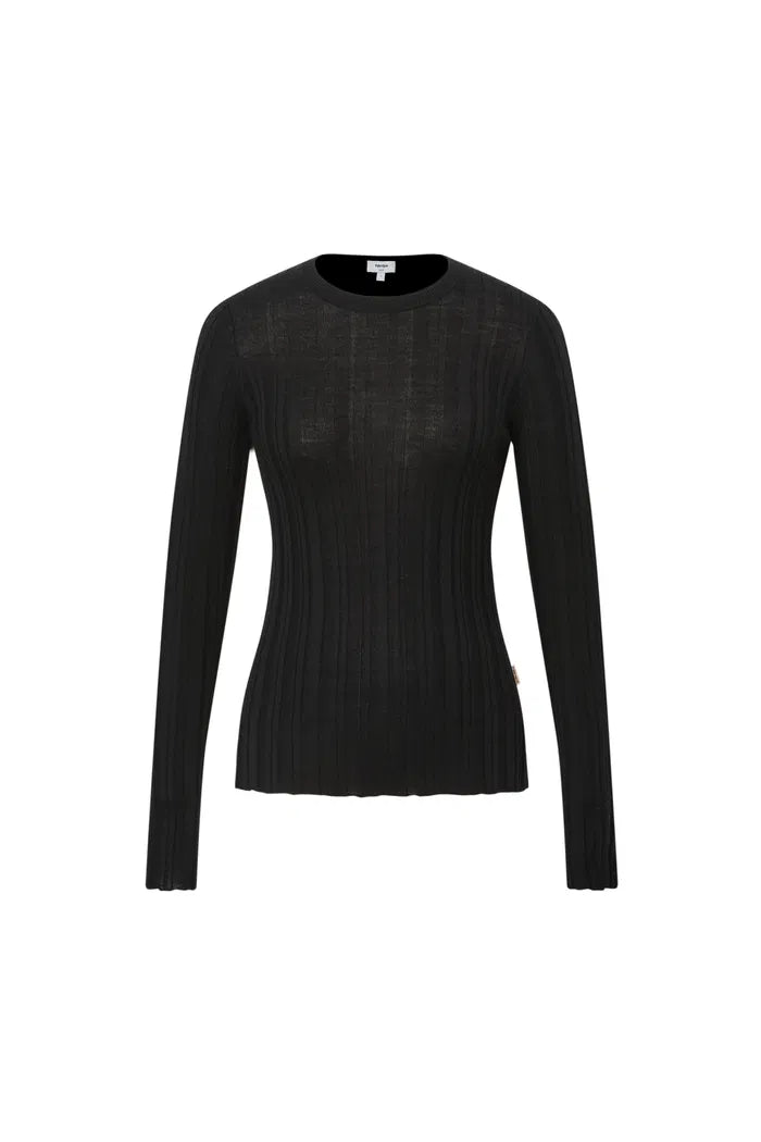 Fitted Merino wool yarn creates a body-skimming silhouette that's both cozy and flattering. Irregular ribbing adds interest, while additional side slits ensure it moves with you, not against you.