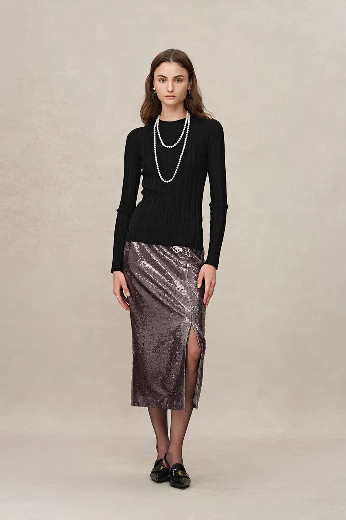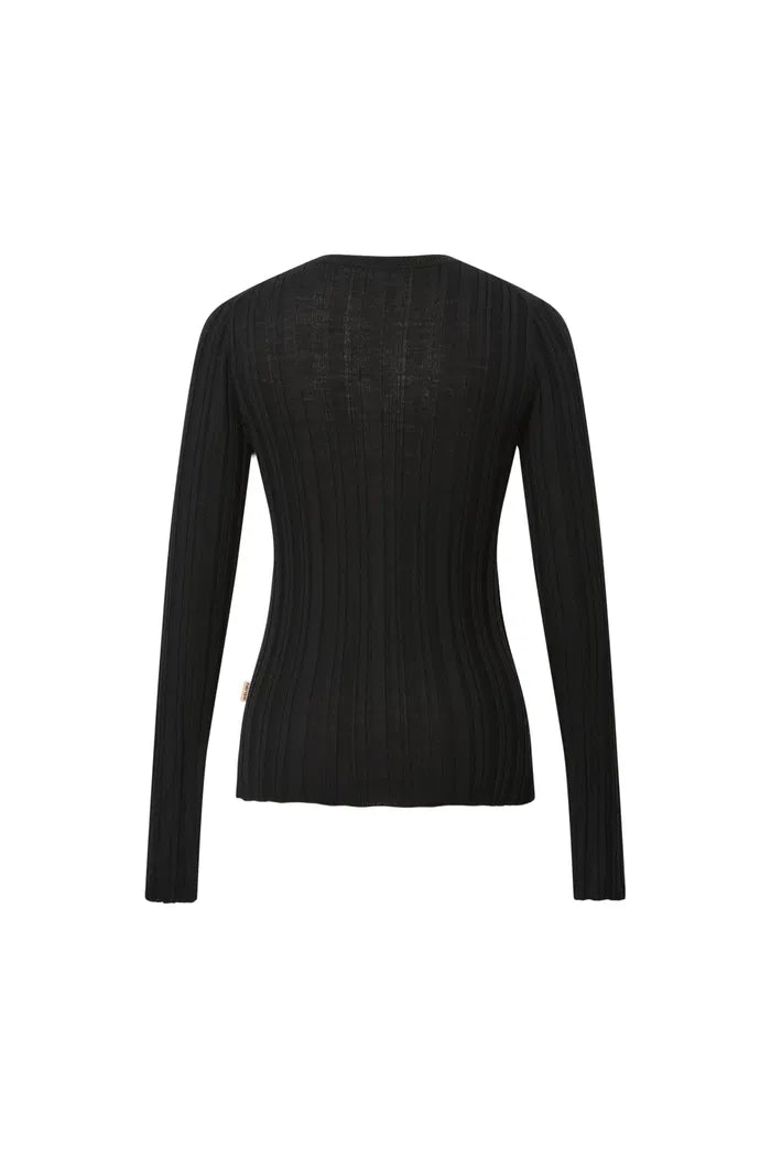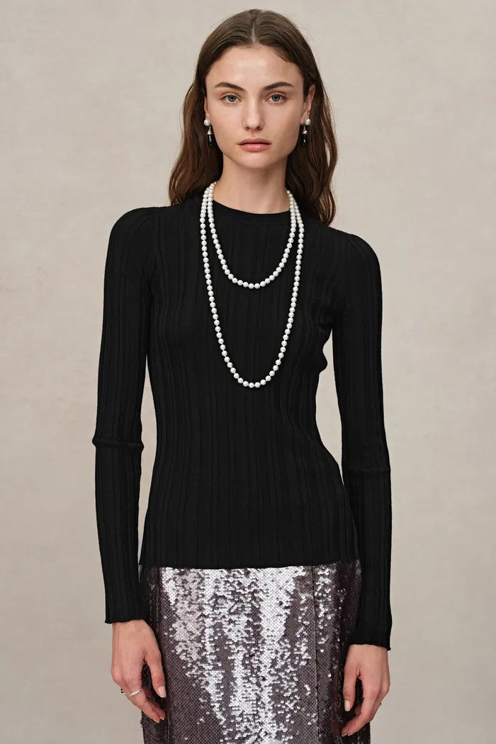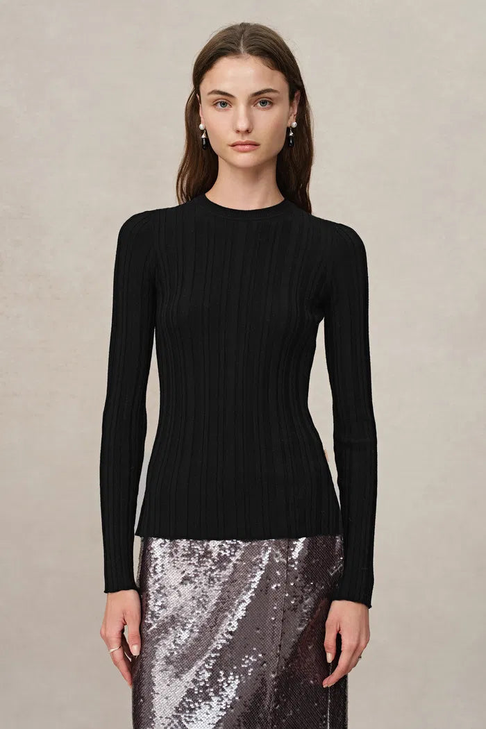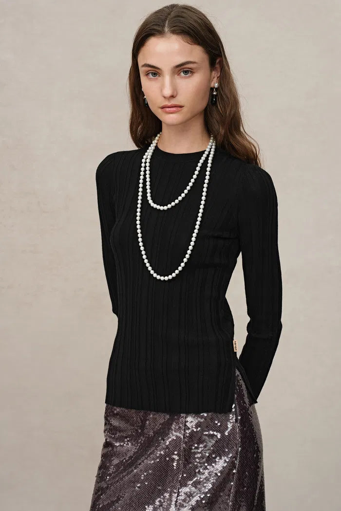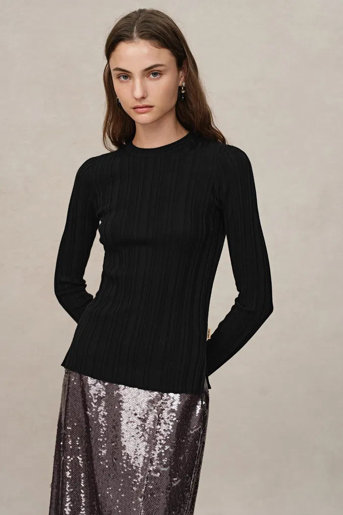 Cara Side Slit Long Sleeve Fitted Top in Merino Wool Yang Yarn Knit