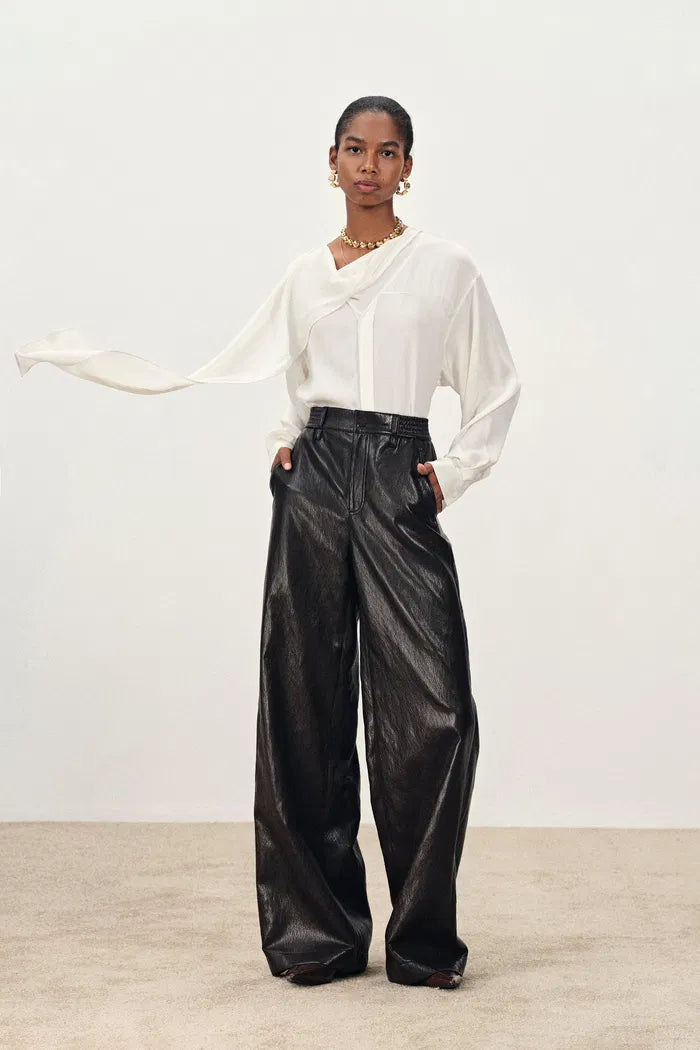 Charlotte Flowing Scarf Style Tie Blouse in Silk Satin