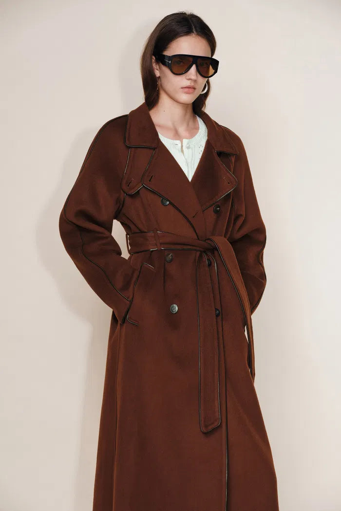 Ponente PU Trim Wool Trench Coat in Double-Face Merino Wool