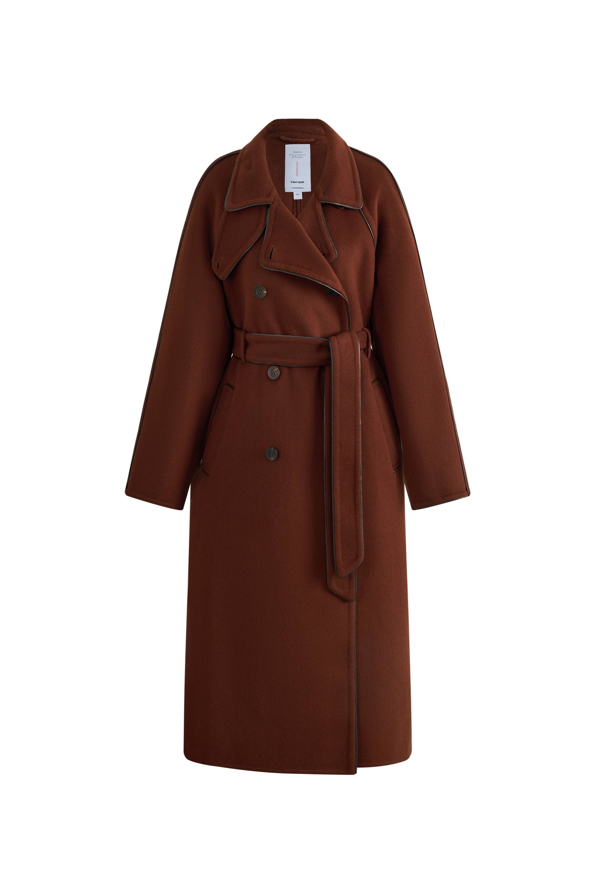 ​ ​ A modern take on the trench. The oversized wool cut keeps its tailored edge while leather piping adds just the right amount of structure.