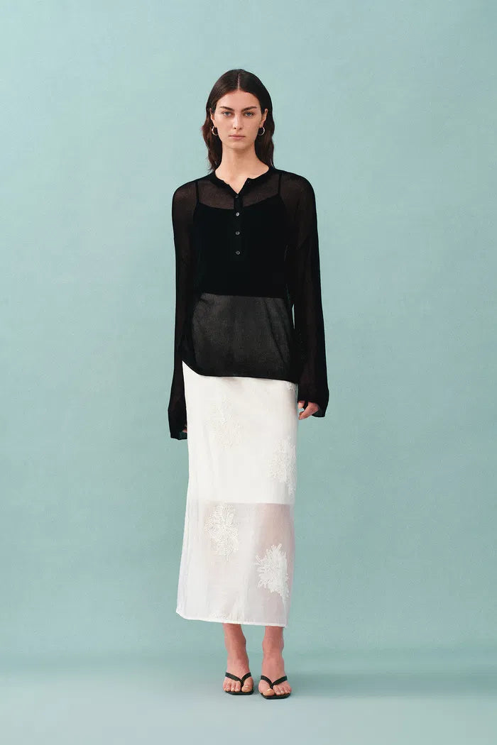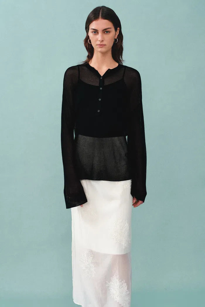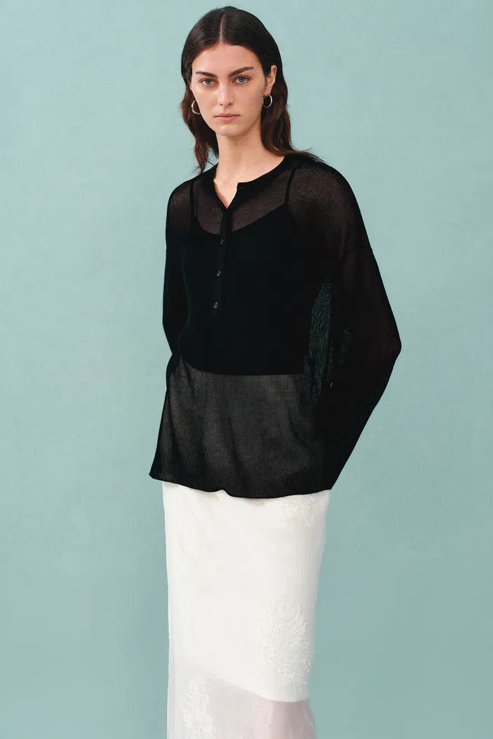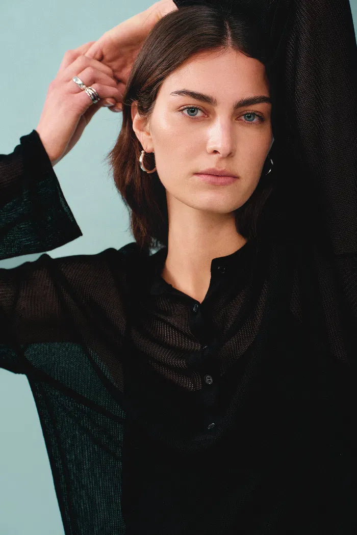 Tracy Semi Sheer Buttoned Blouse in Tencel Silk Knit