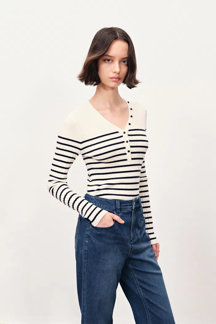 Vivi Henley Long Sleeve Top in Merino Wool Knit