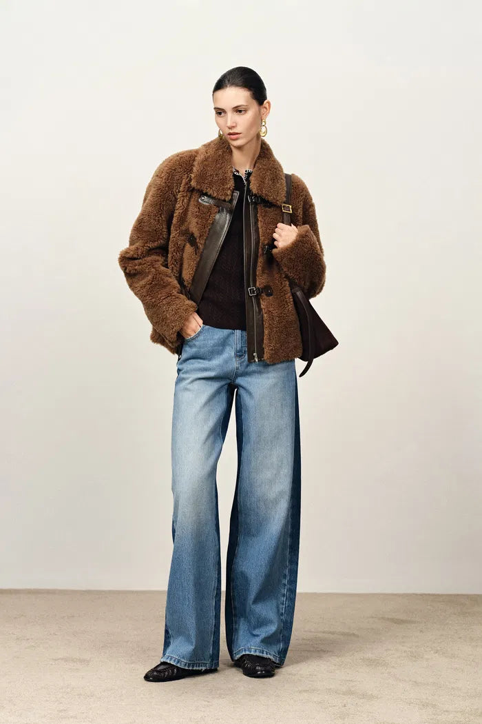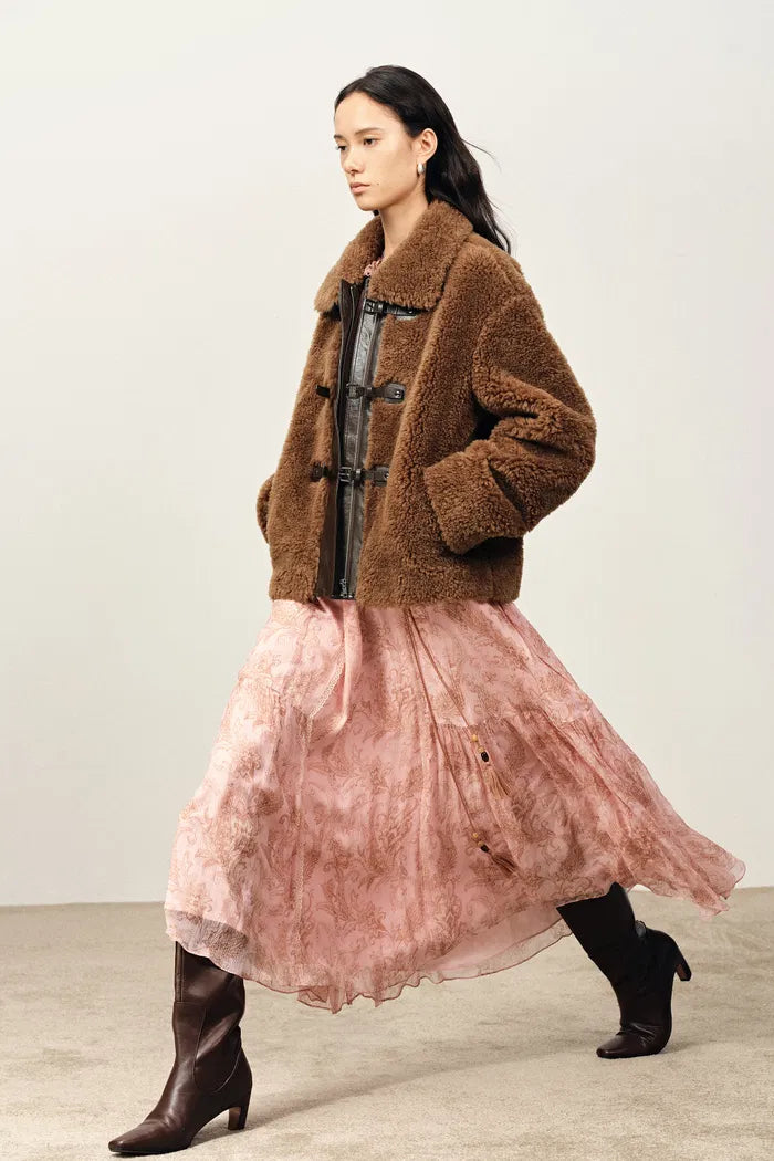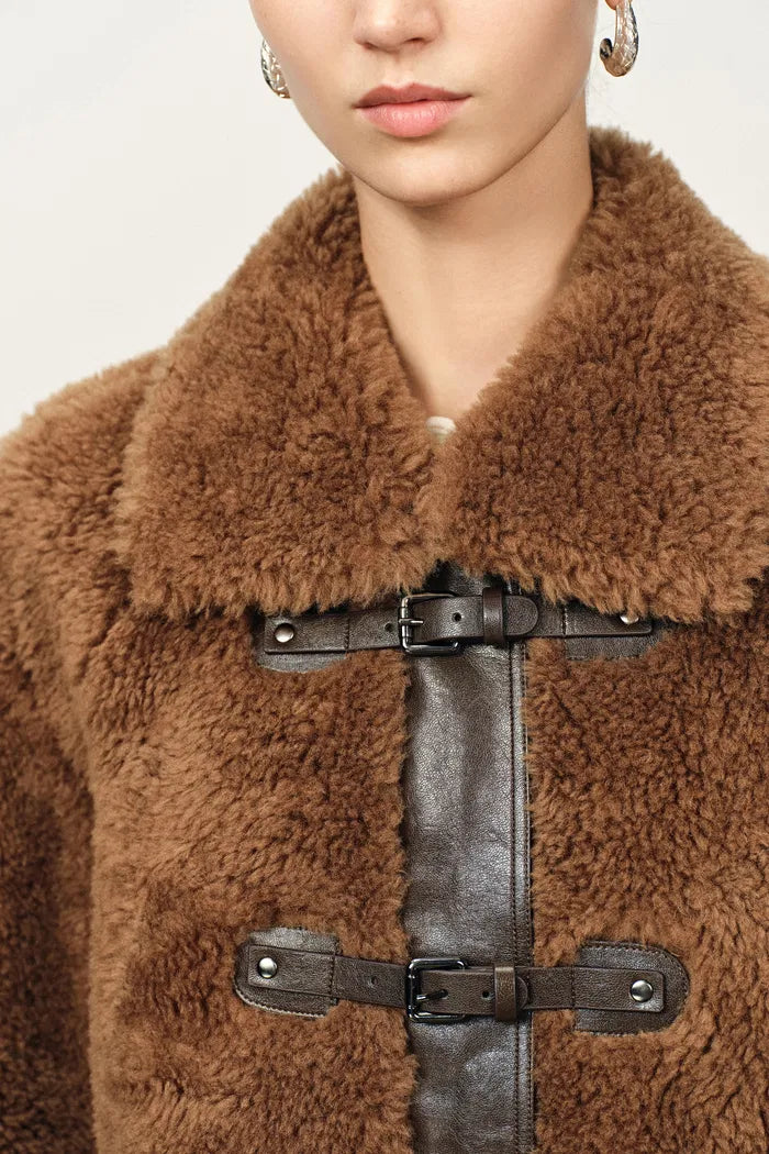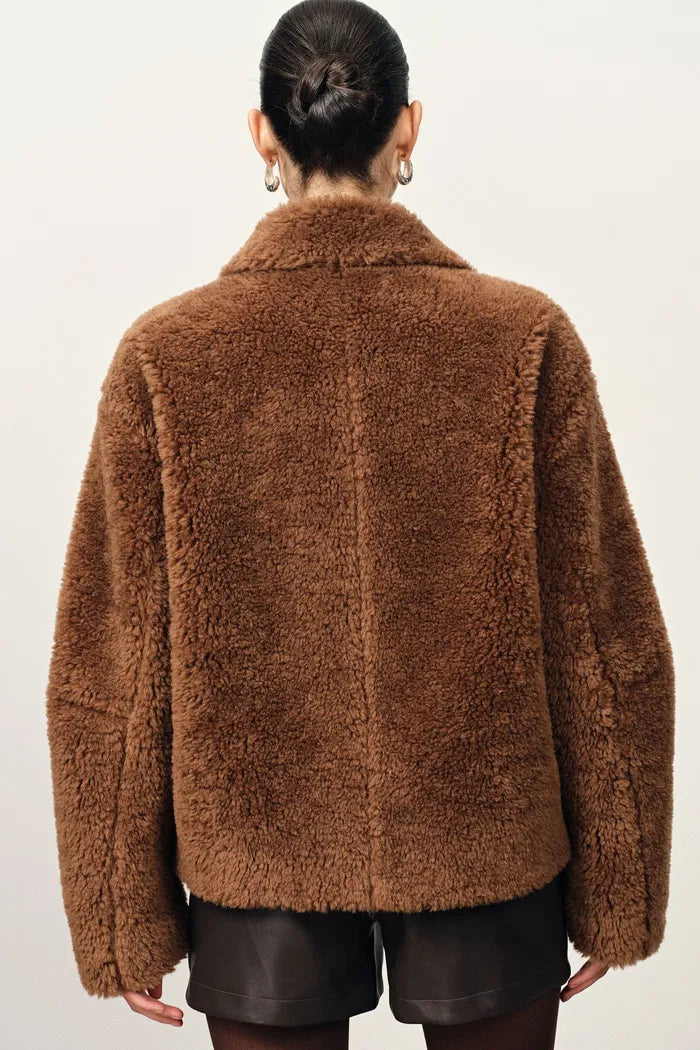 Alisa Faux Sherpa Fleece Short Coat in Merino Wool Teddy