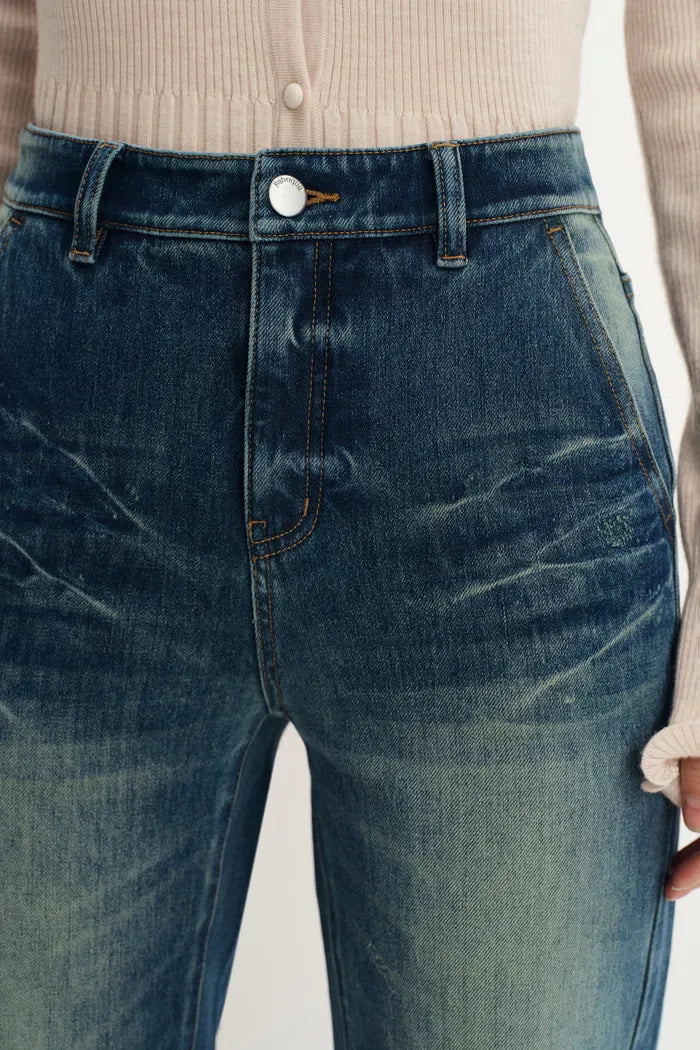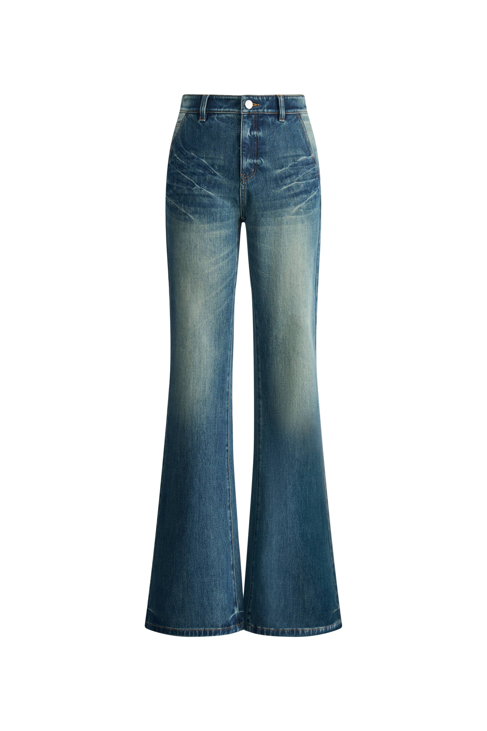 Ava Contoured Waistband Gradient Washed Flared Jeans in Stretchy Denim