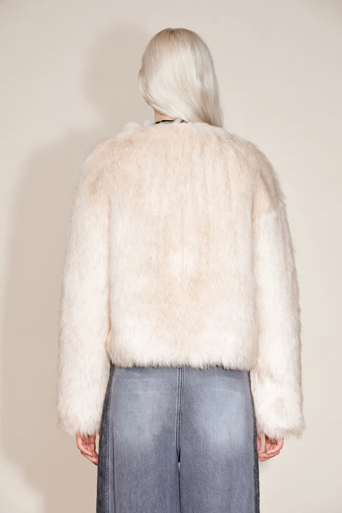 Beryl Round Collar Short Coat in Faux Fox Fur