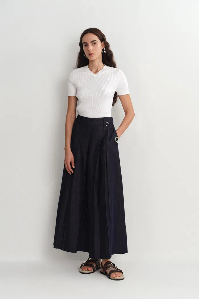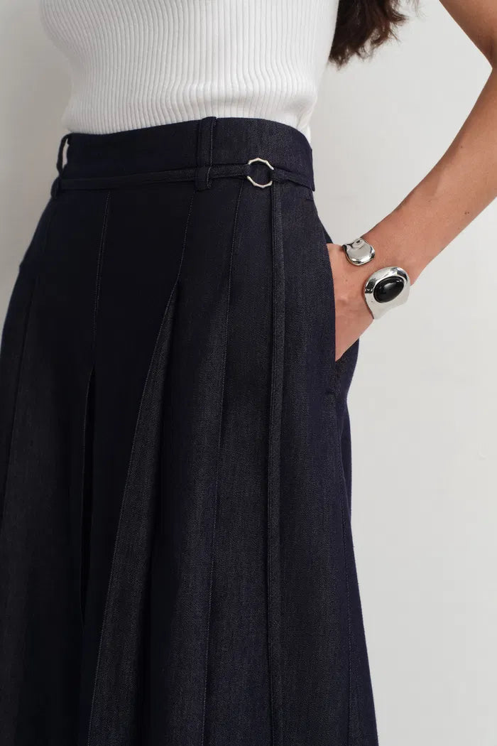 Mignon Mid Rise Wide Leg Culottes in Lyocell Denim
