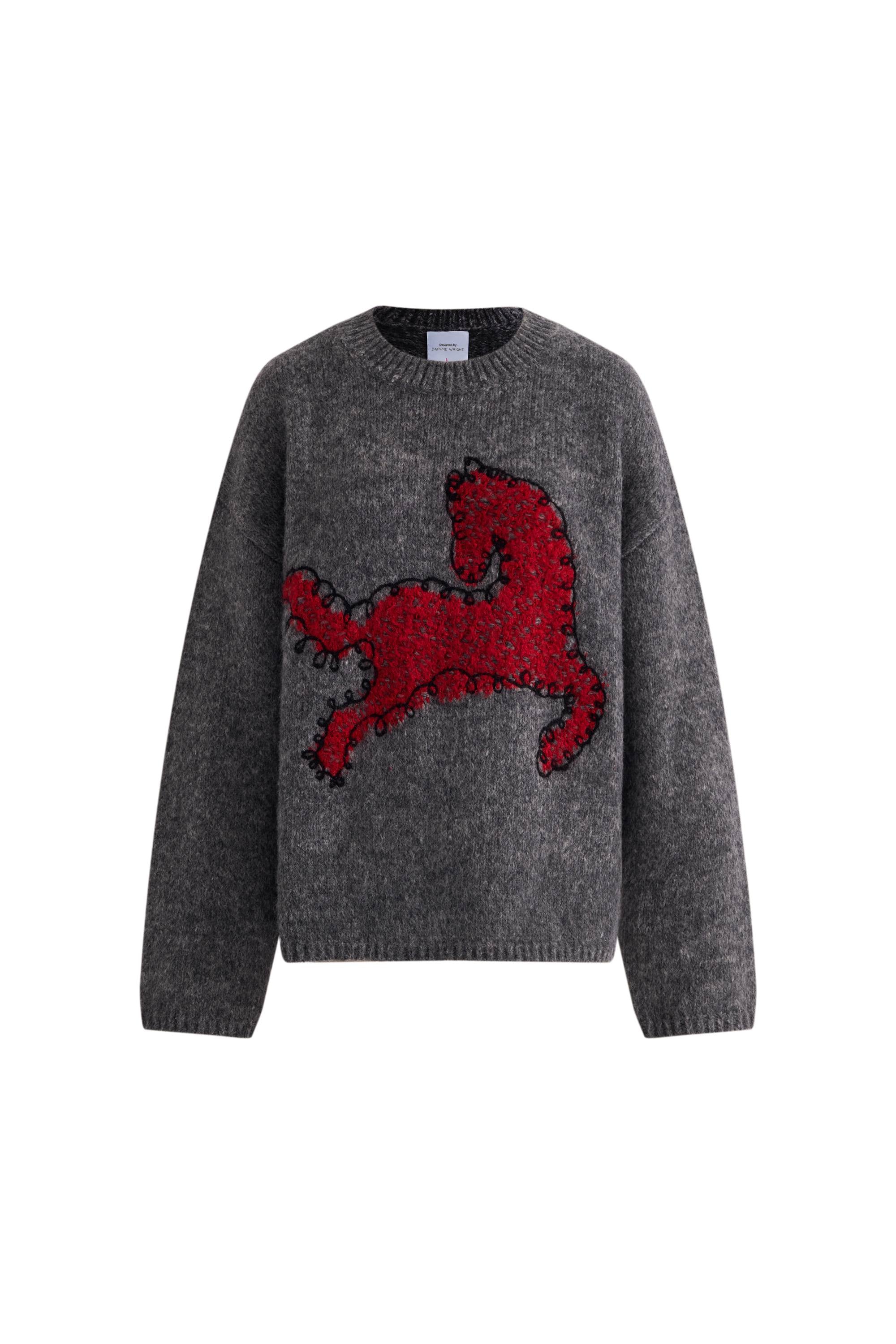 Quella Red Pony Drop Shoulder Sweater in Alpaca Wool Knit