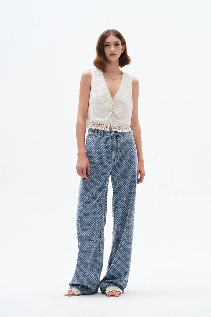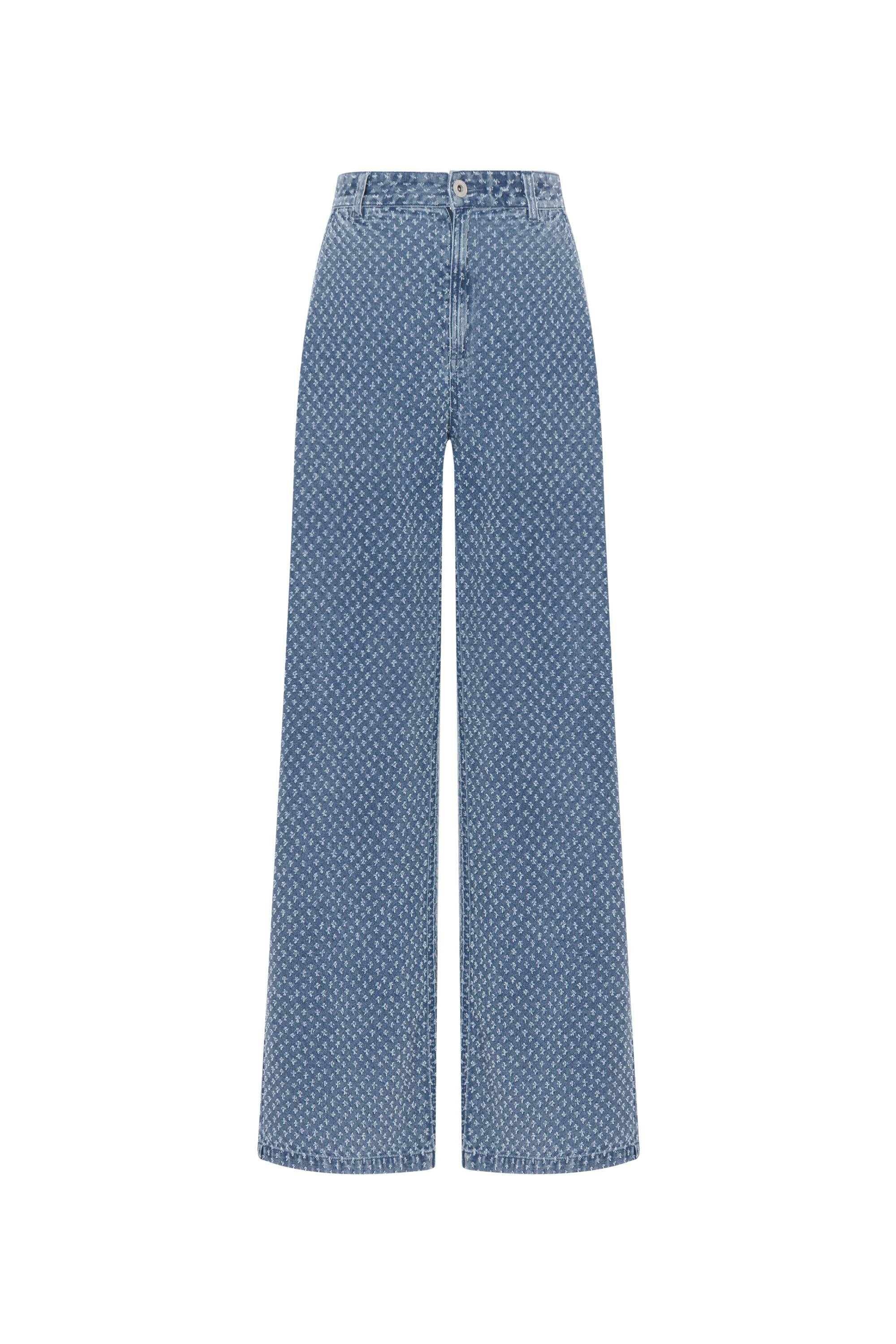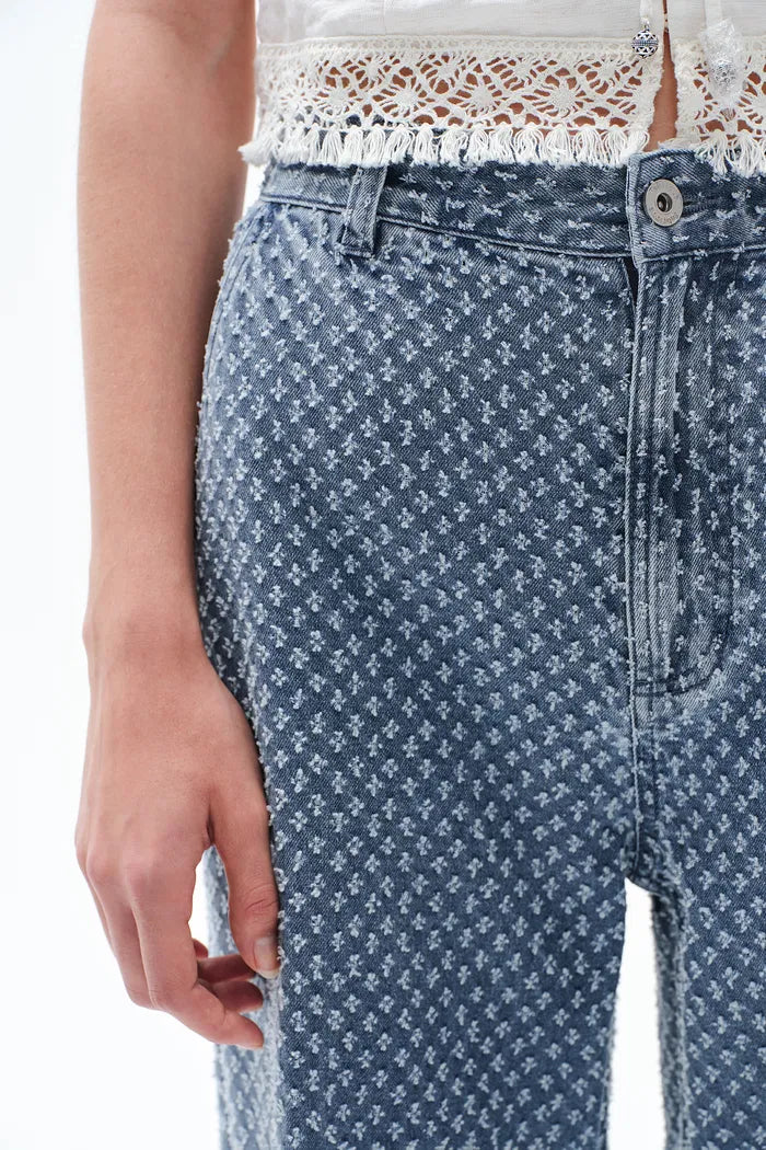 Sunny Wide Leg Jacquard Jeans in Cotton Denim