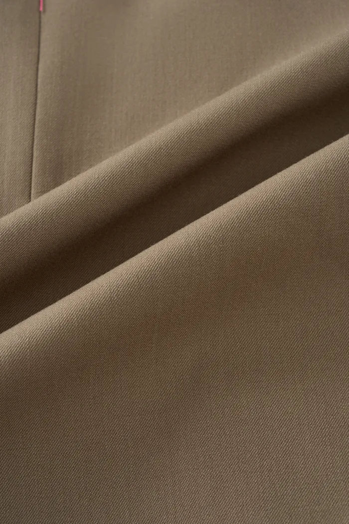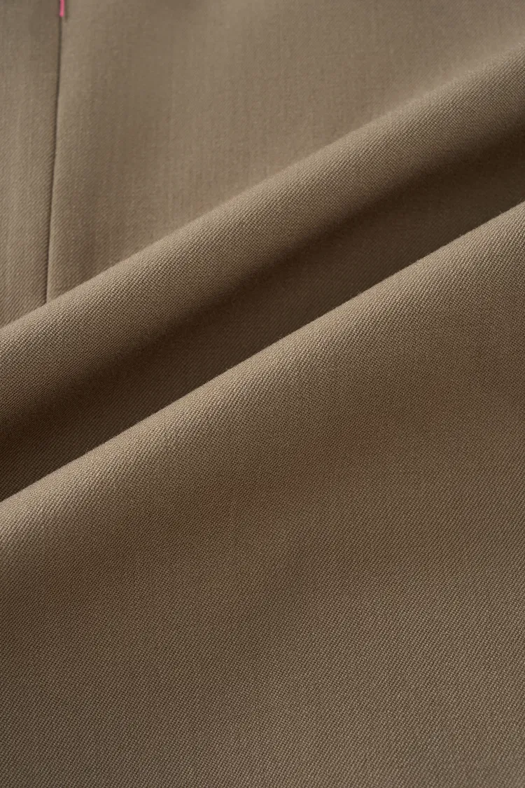 Australian Merino wool blend suiting with ultra-fine fibers. Lightweight yet structured with incredibly fine texture. Drapes beautifully while resisting wrinkles for lasting elegance. Refined, structured, elegant.