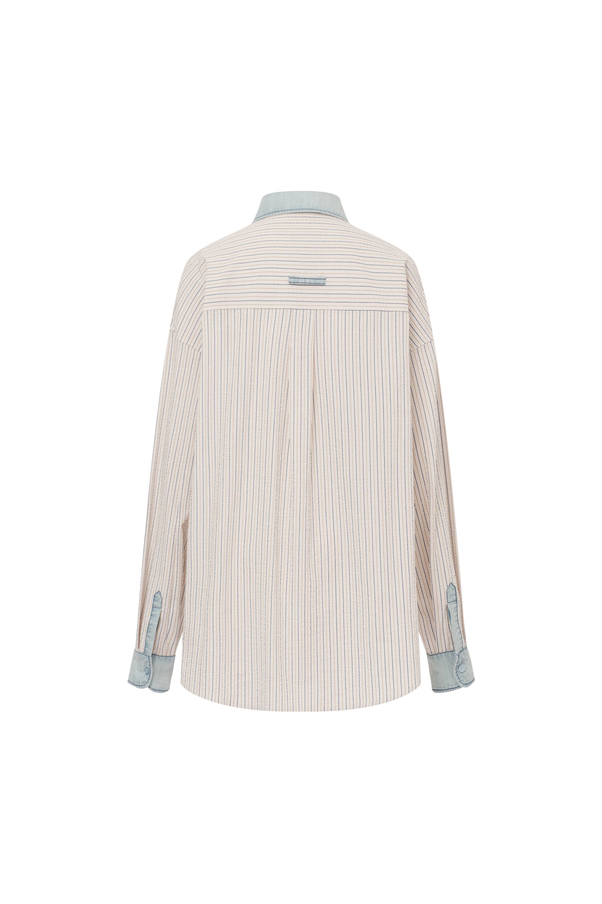 Daisy Denim Collar Striped Shirt in Cotton Seersucker