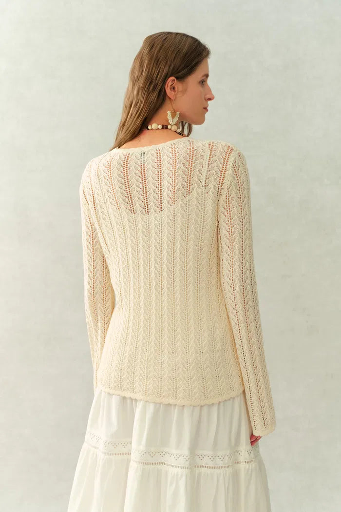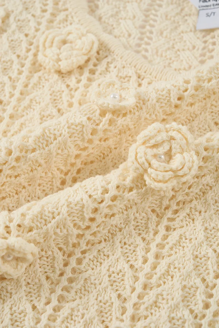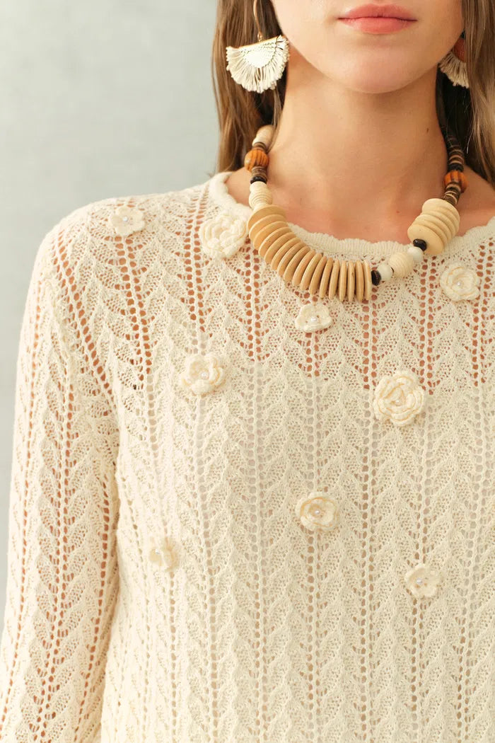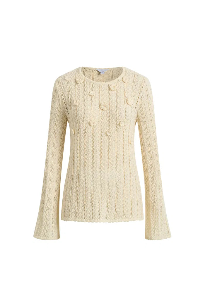 Eliana Hand-Crocheted Floral Openwork Top In Cotton Knit