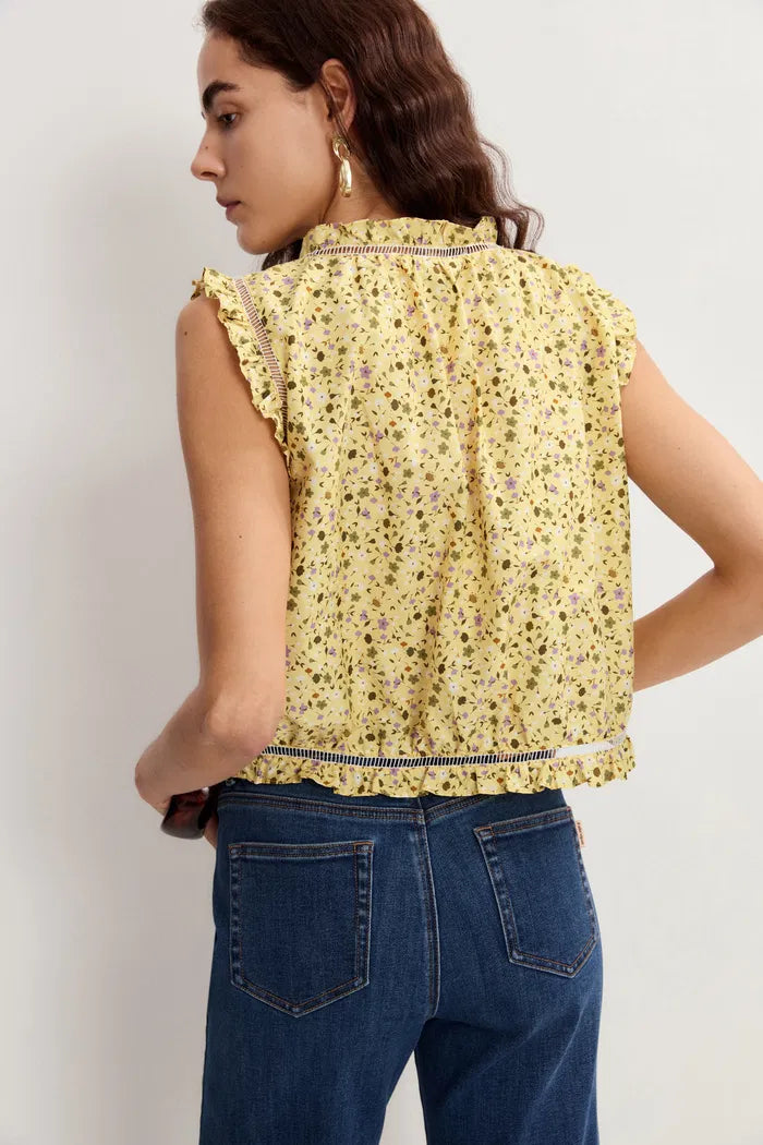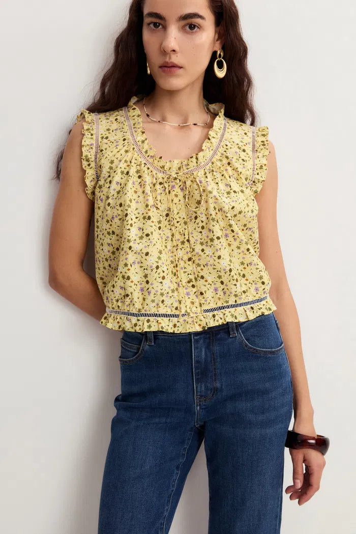 Floris Floral Sleeveless Blouse Top in Mulberry Silk Cotton