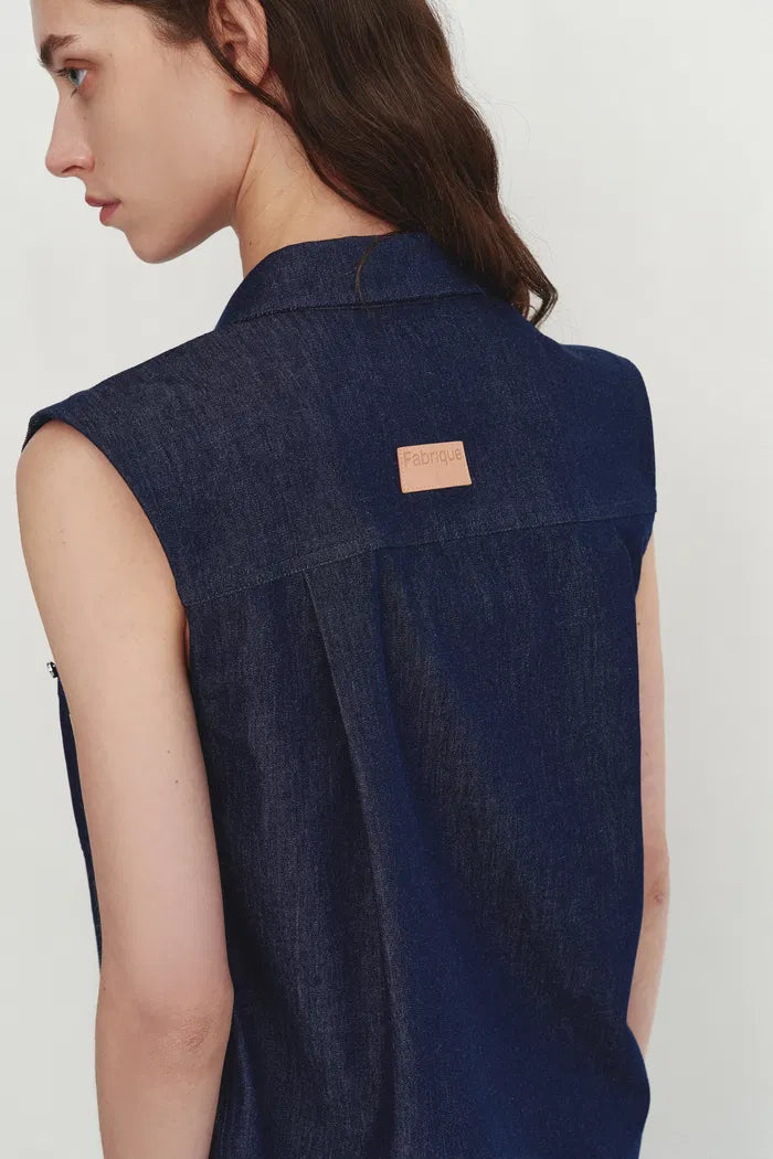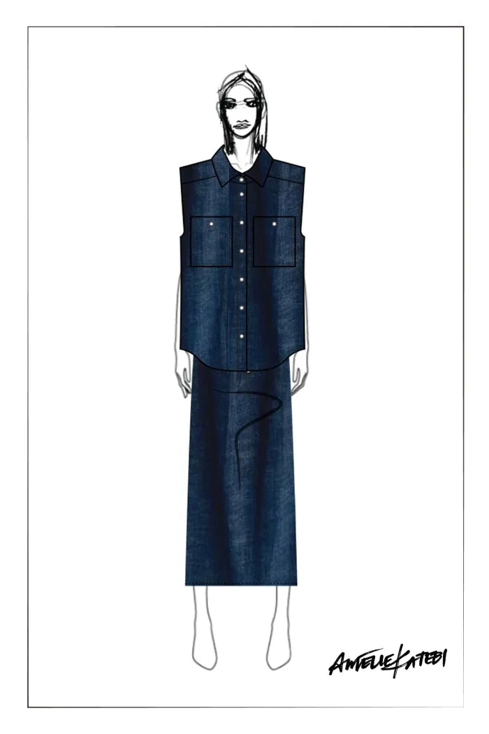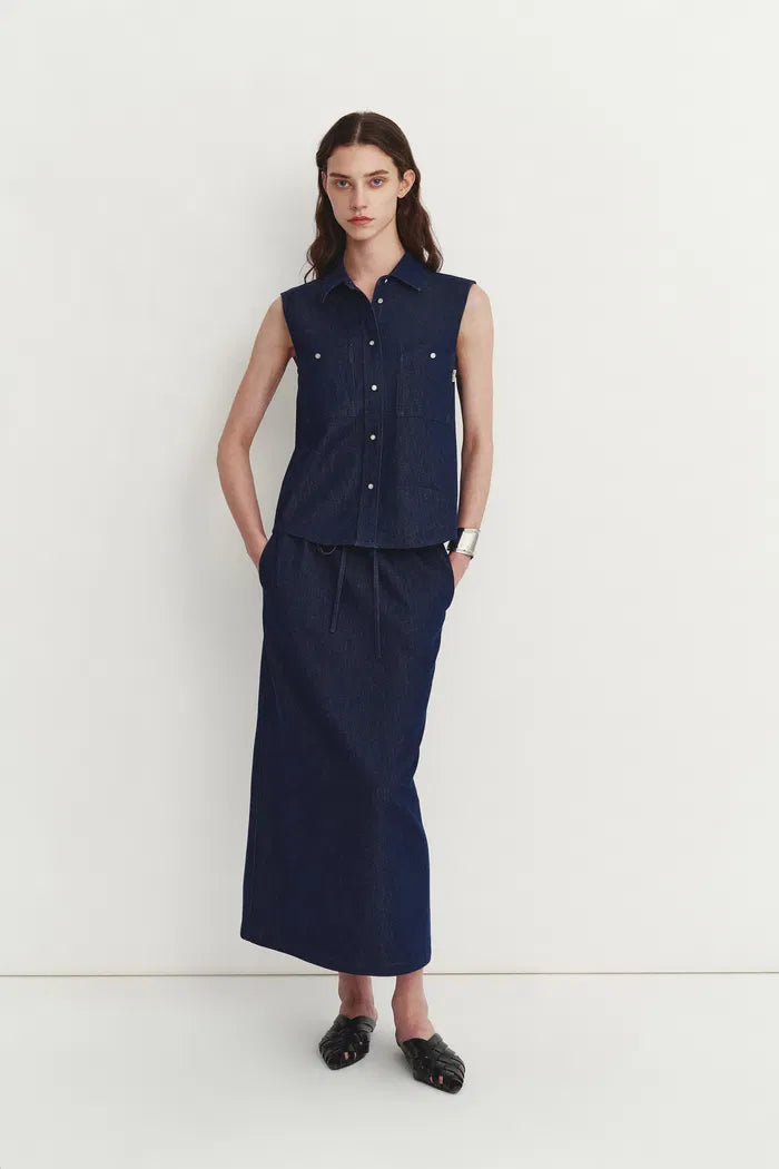 Giulia Lightweight Sleeveless Top and Midi Skirt in Linen-Cotton Denim