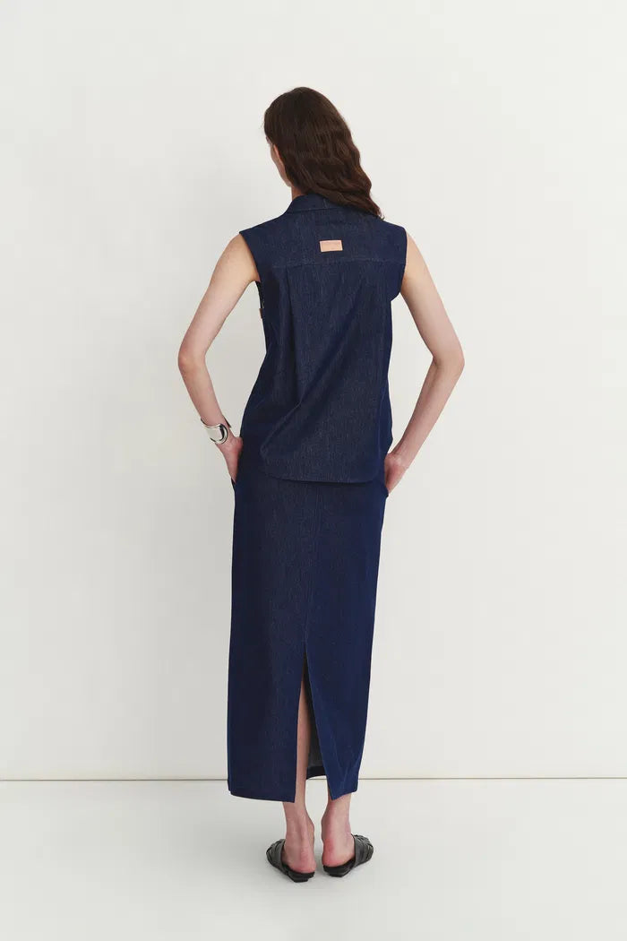 Giulia Lightweight Sleeveless Top in Linen-Cotton Denim