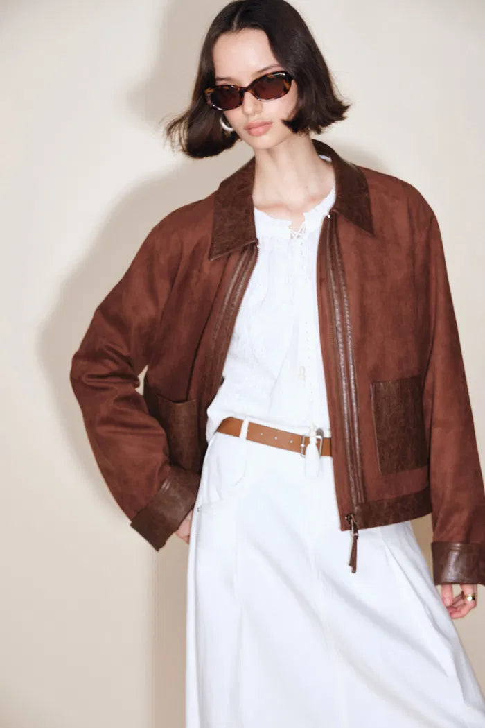 Laso Leather Trim Suede Jacket in Ultrasuede