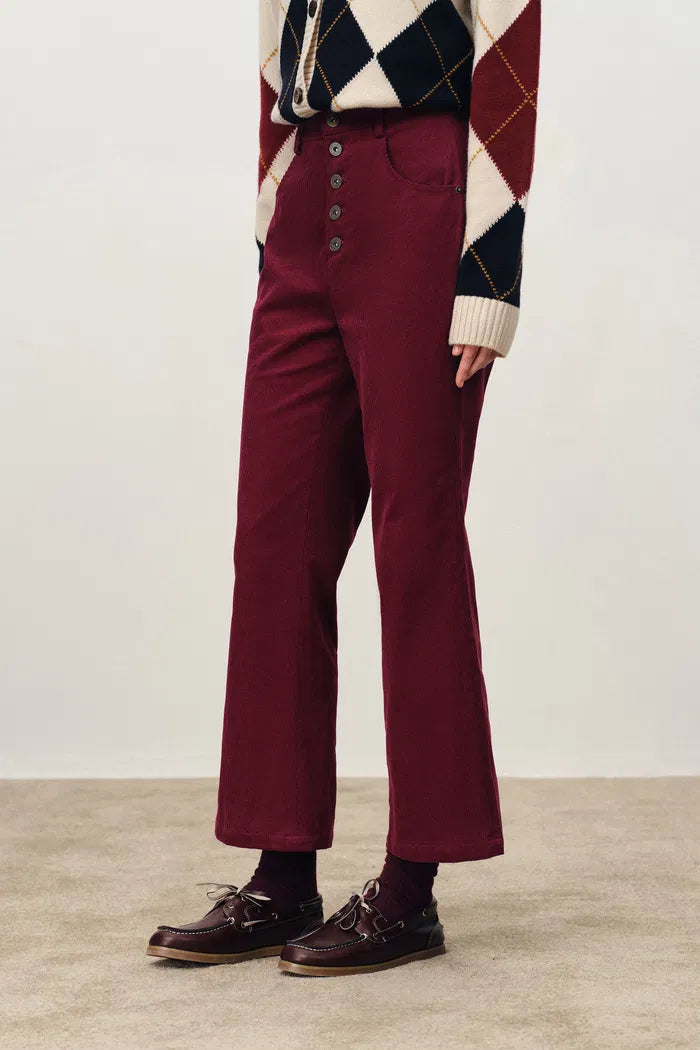 Louis French Flared Cropped Trousers in Cotton Corduroy