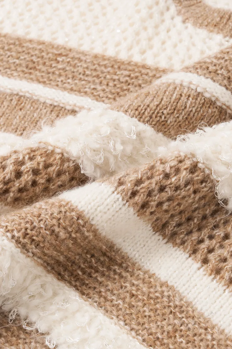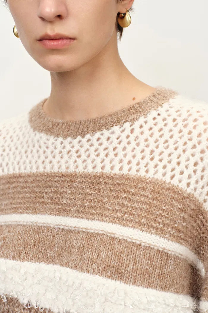 Megan Multi Texture Striped Sweater in Merino Mohair Wool Knit