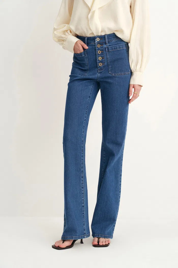 Sarah Five Button Bootcut Jeans in Stretch Denim