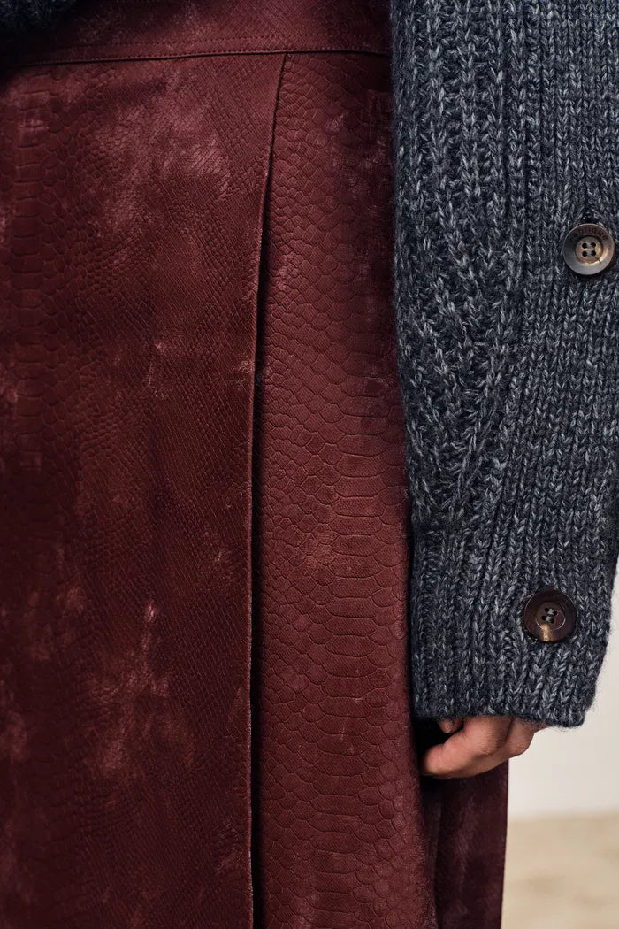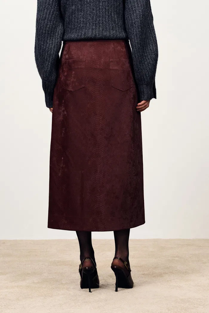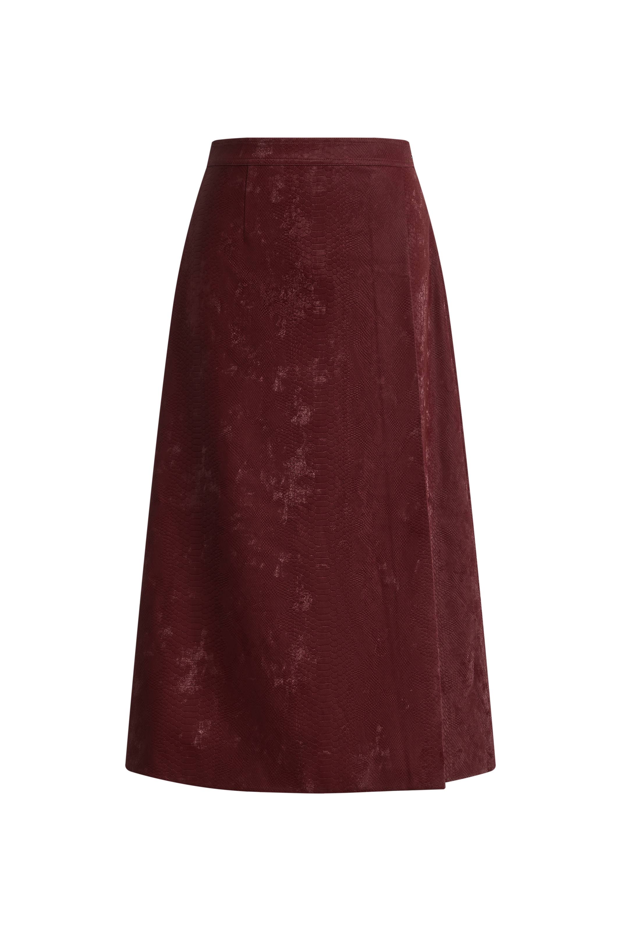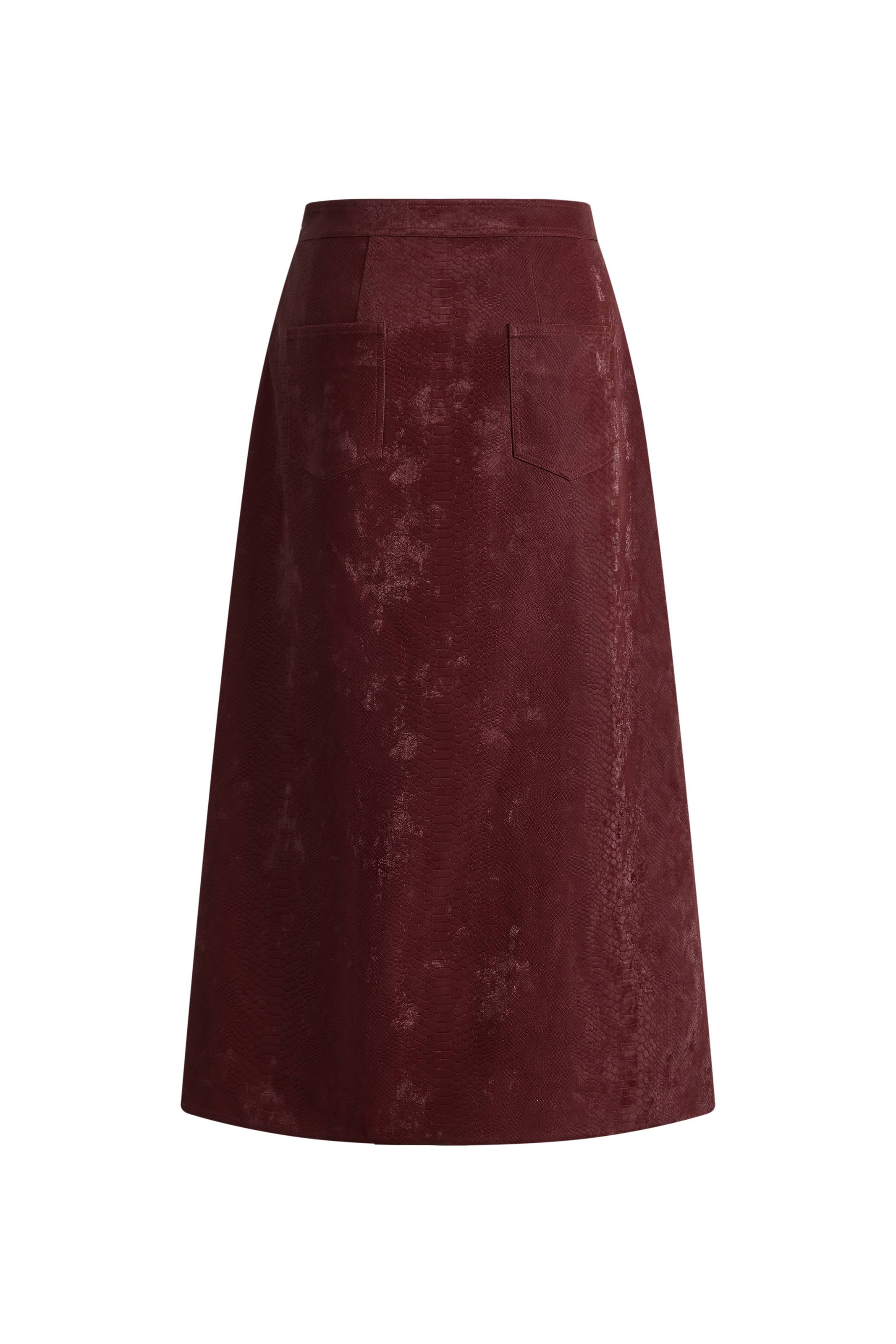 Scirocco Burgundy Midi Skirt in Faux Snake Skin Leather