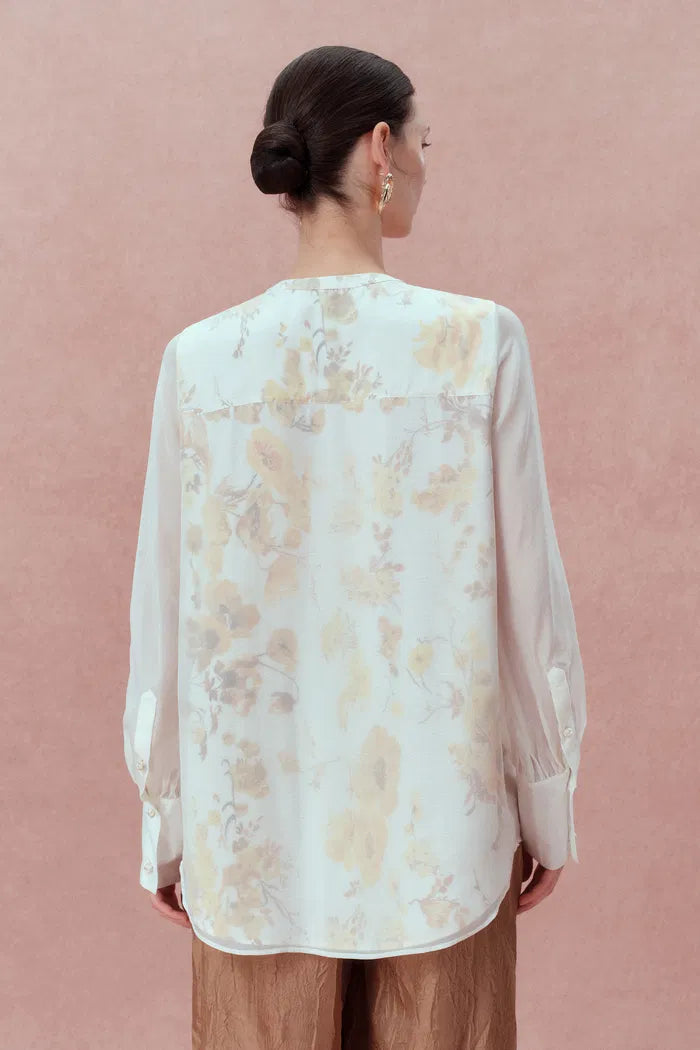 Aniyah Hand Painted Poppies Blouse and Skirt Matching Set in Double-Layer Silk