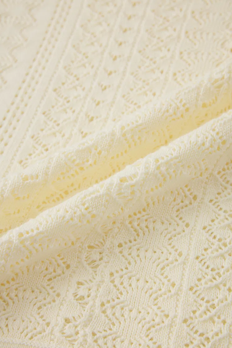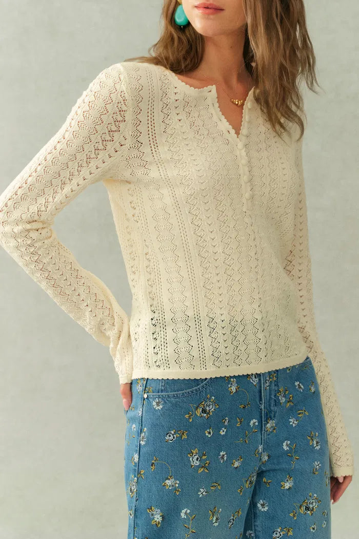 Barbara Openwork Textured Henley-Neck Top In Fine Cotton Yarn Knit