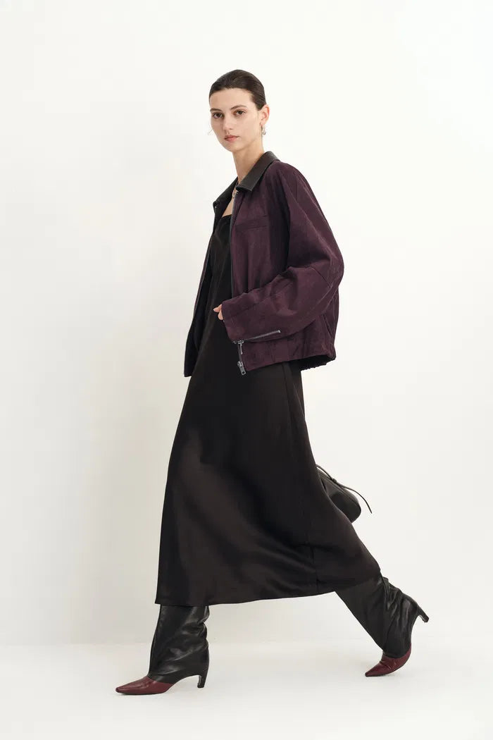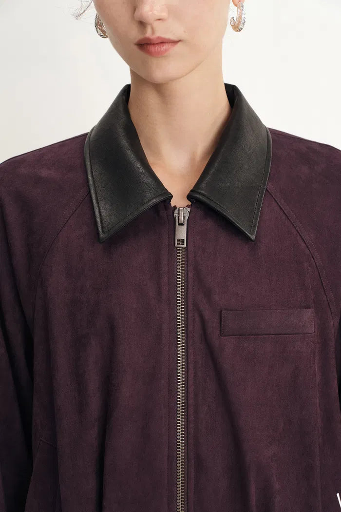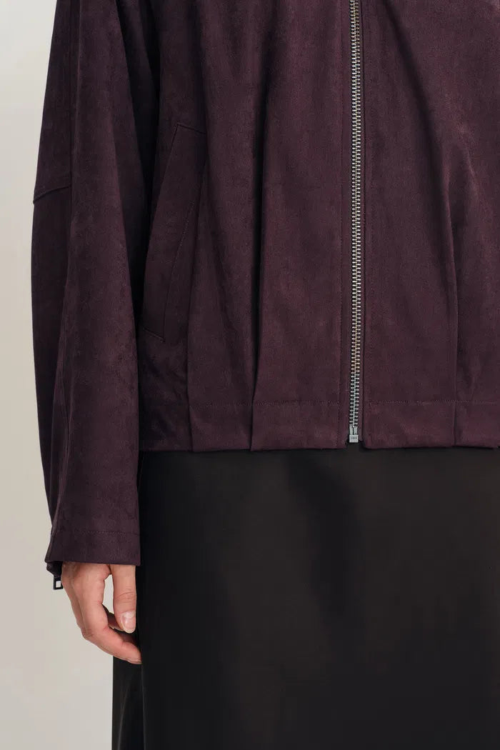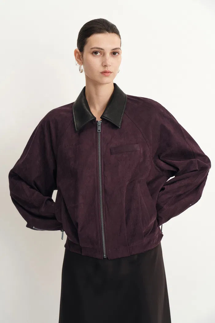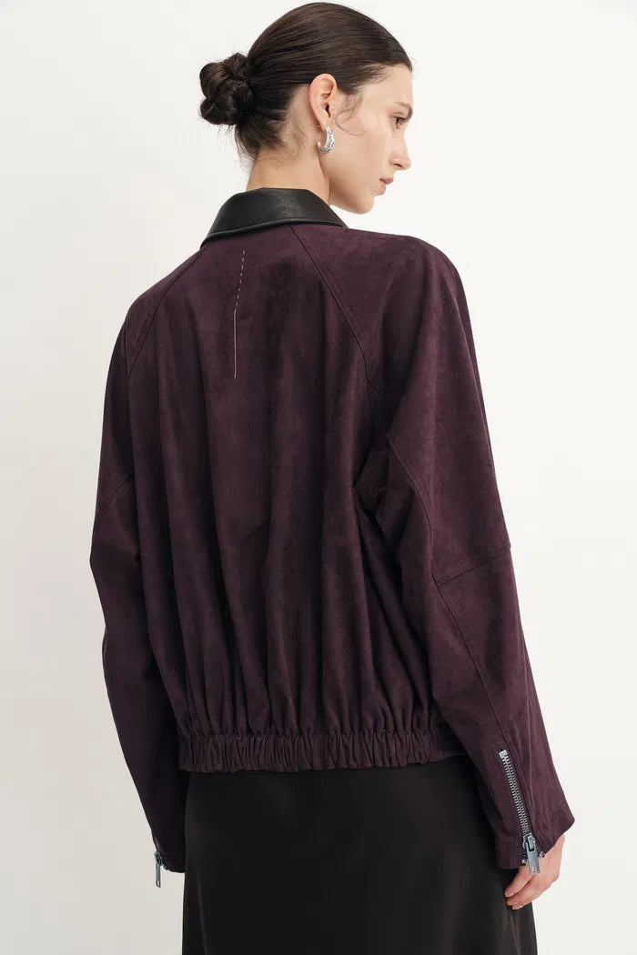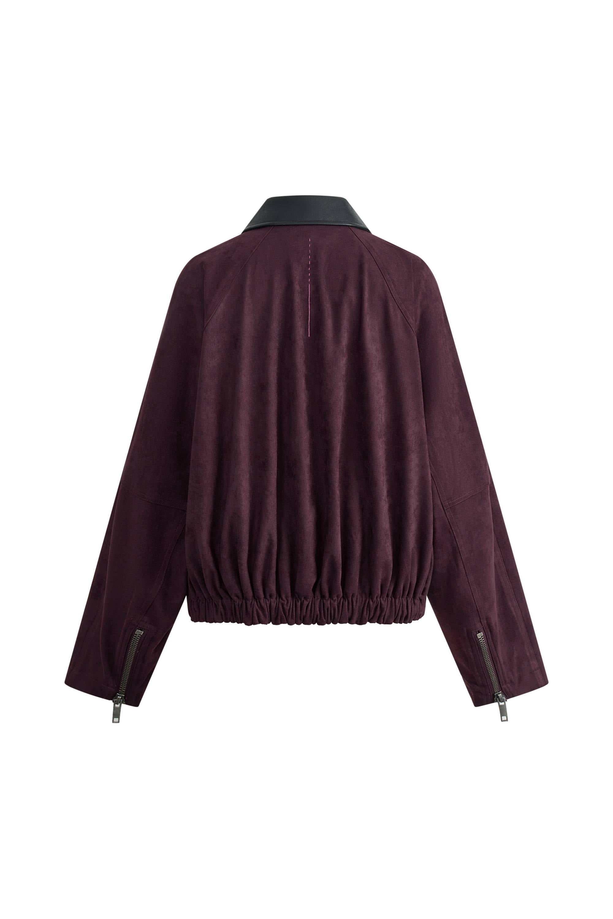 Bass Burgundy Bomber Jacket in Two Tone Faux Suede