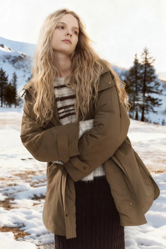 Casey Hooded Drawstring Lightweight Down Jacket in Crinkle Cotton Blend