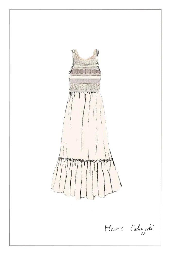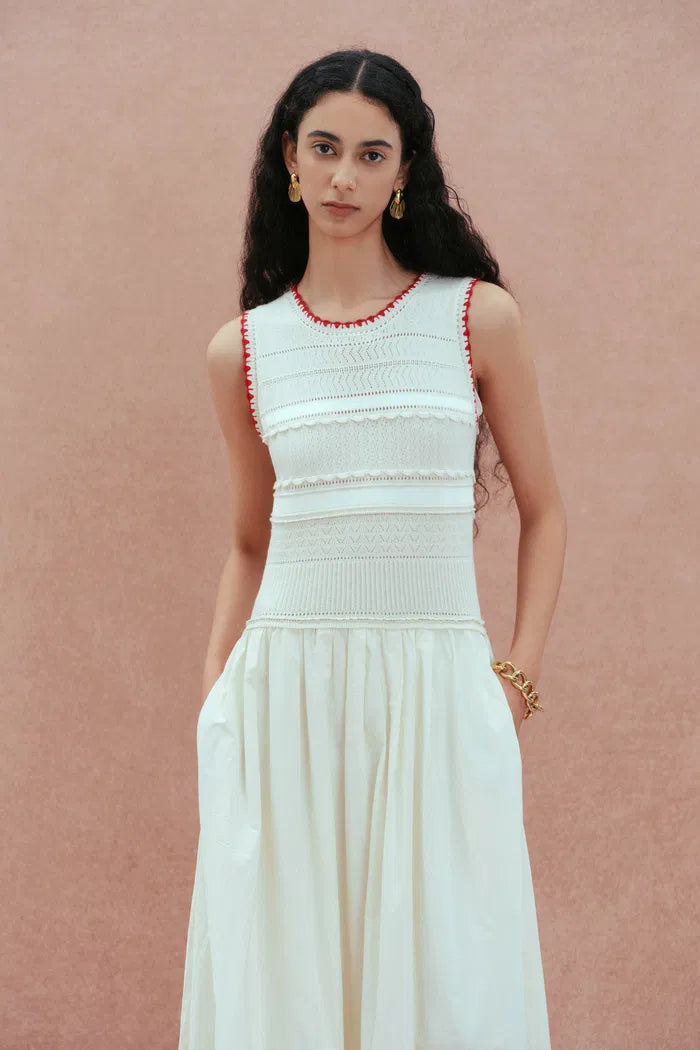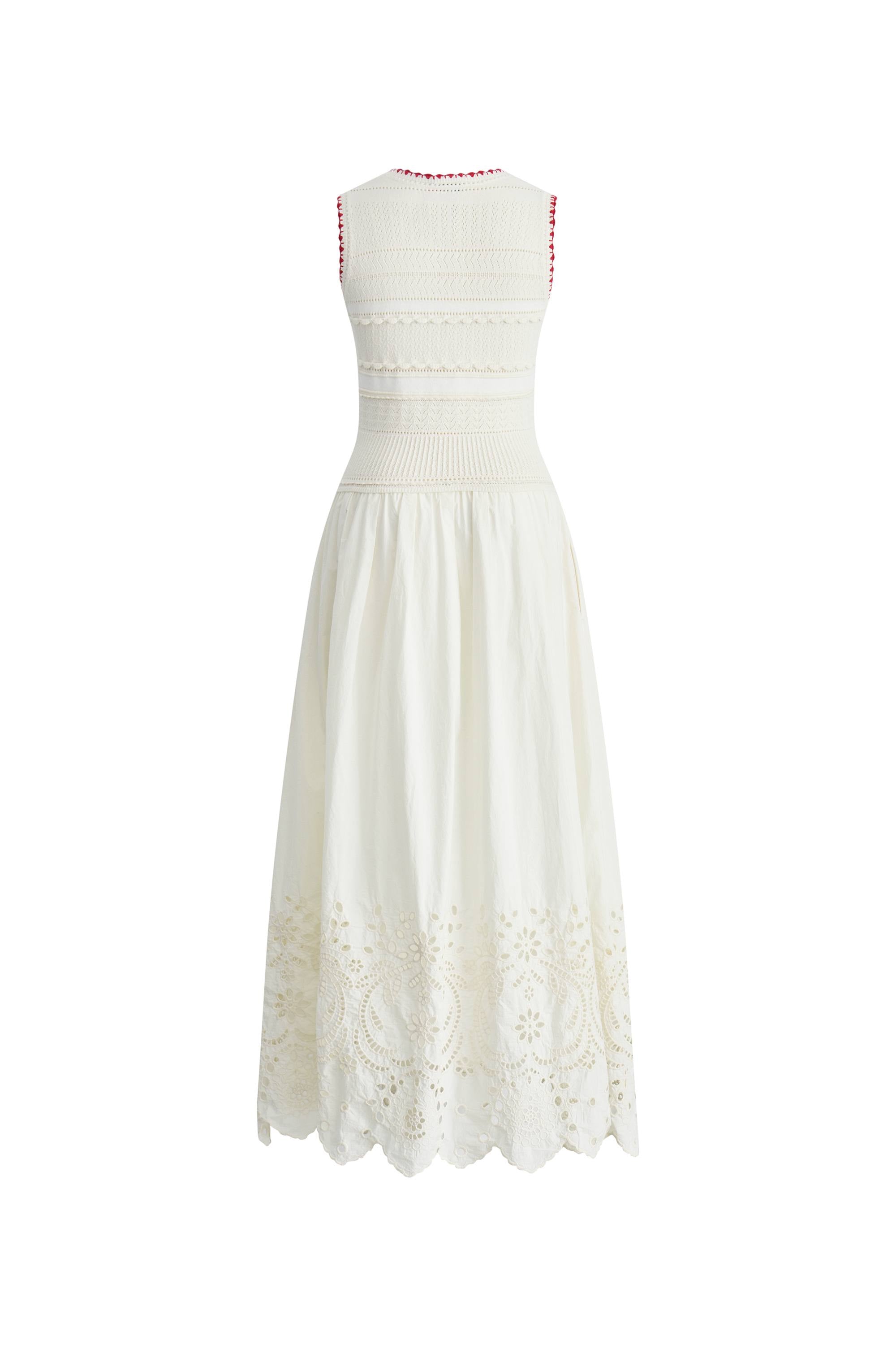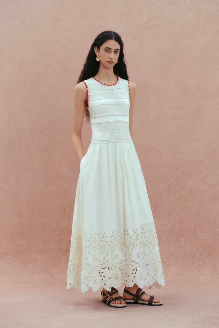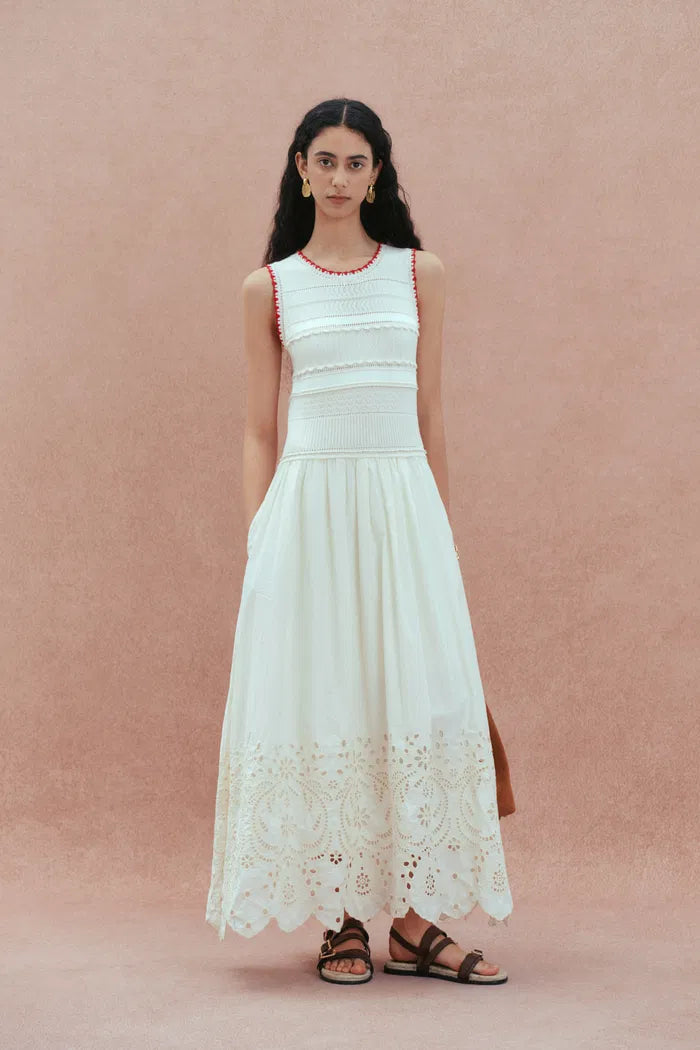 Charlie Mix Media Hand-Embroidered Trim Dress in Cotton-Cashmere and Cotton