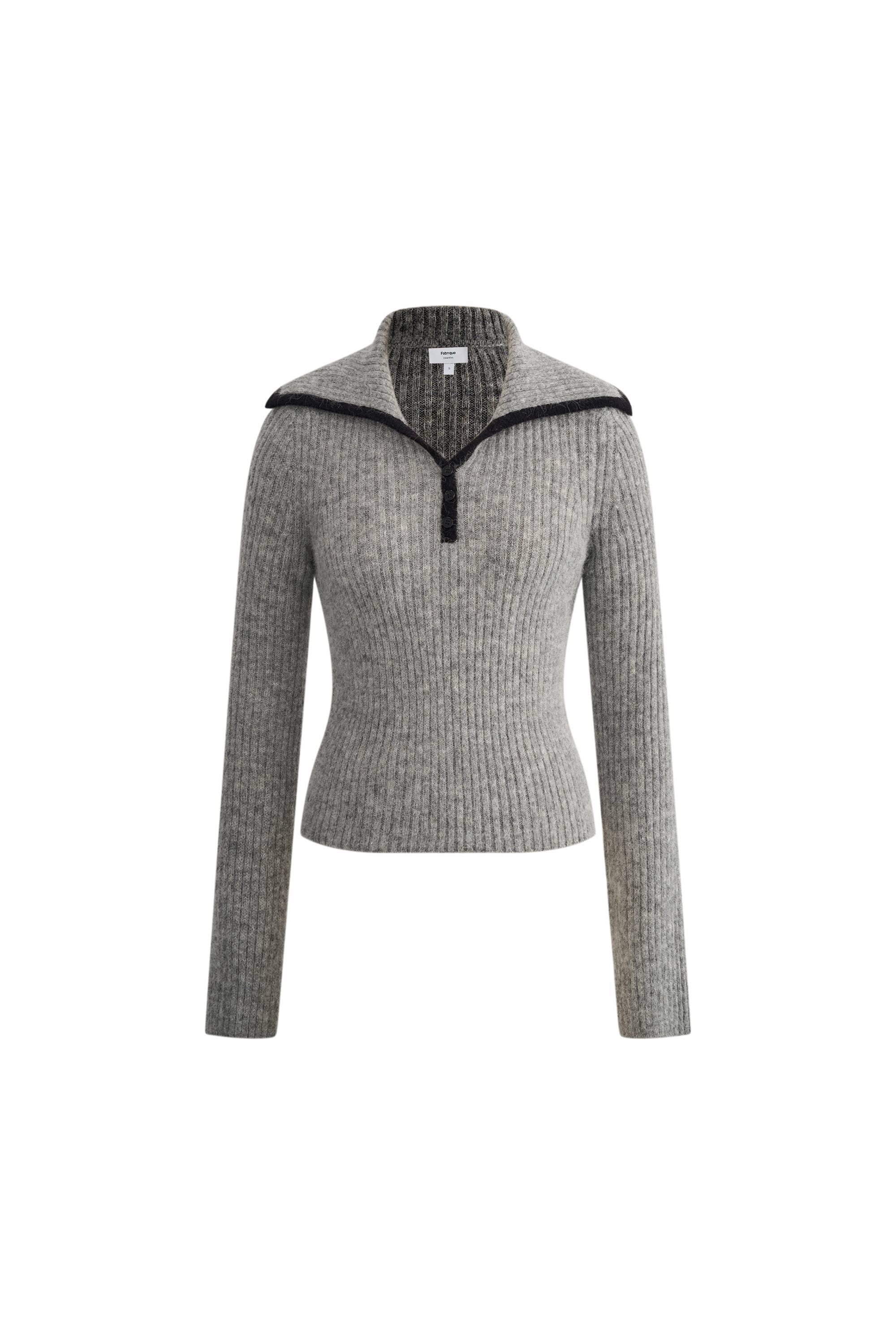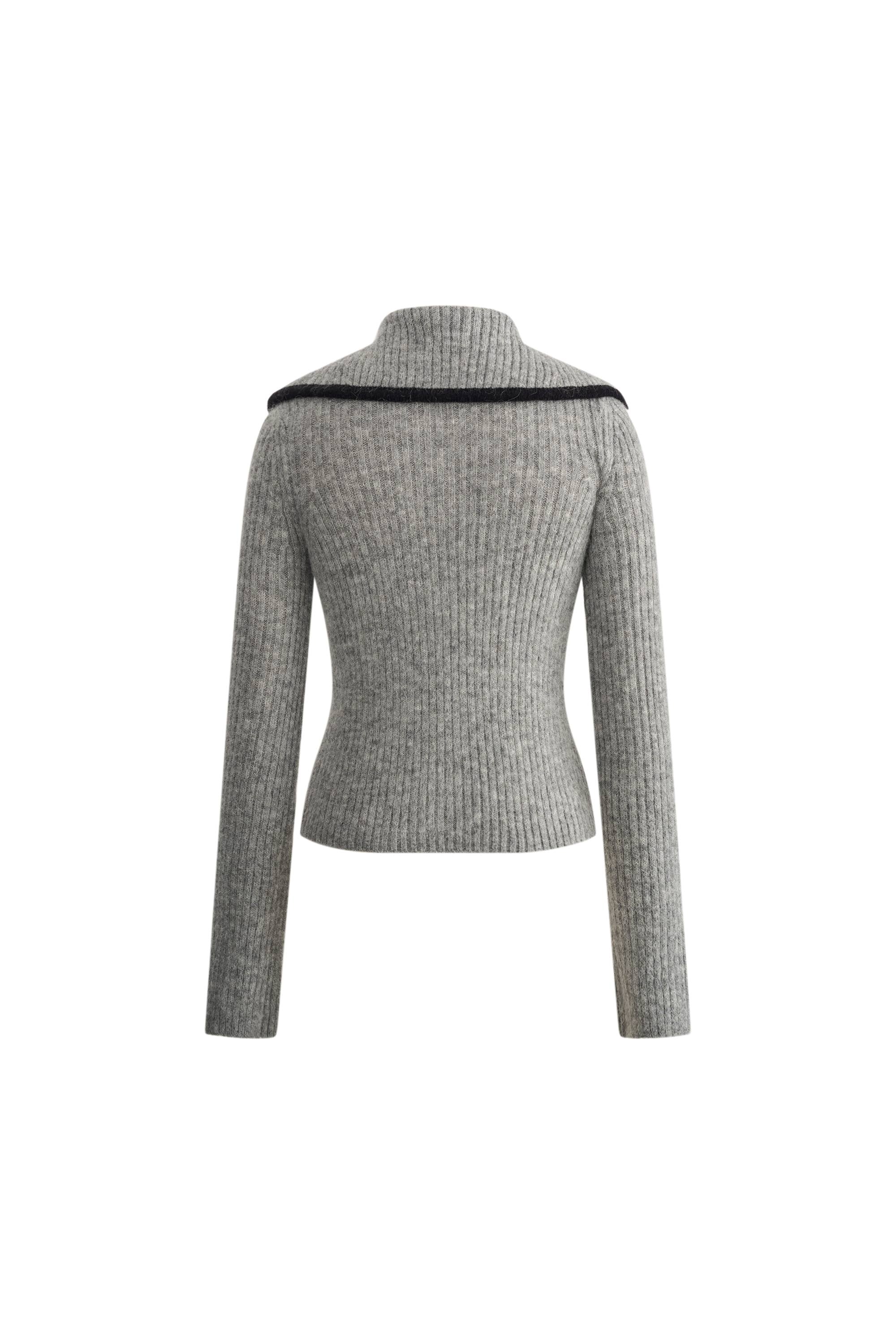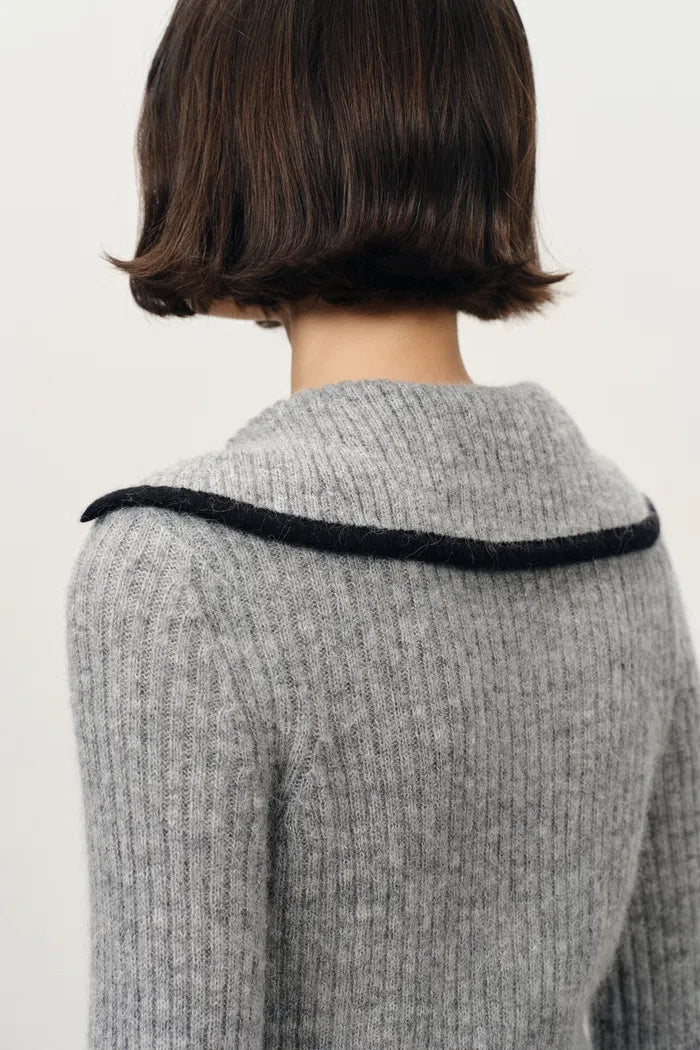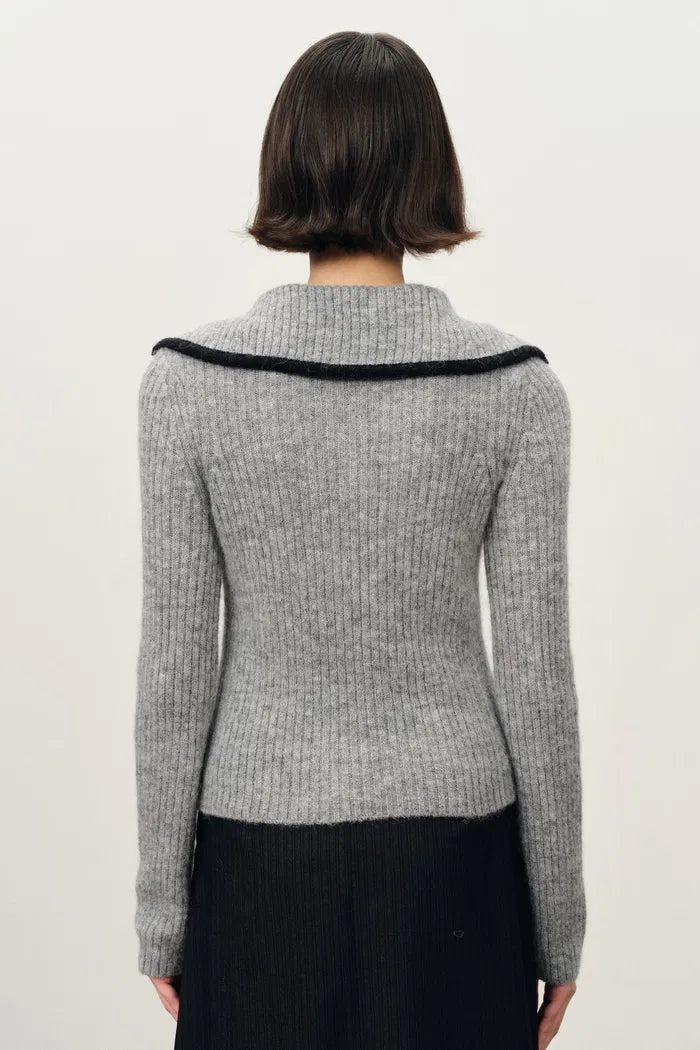 Julie Large Lapel Contrast Collar Fitted Sweater in Wool-Alpaca Blend
