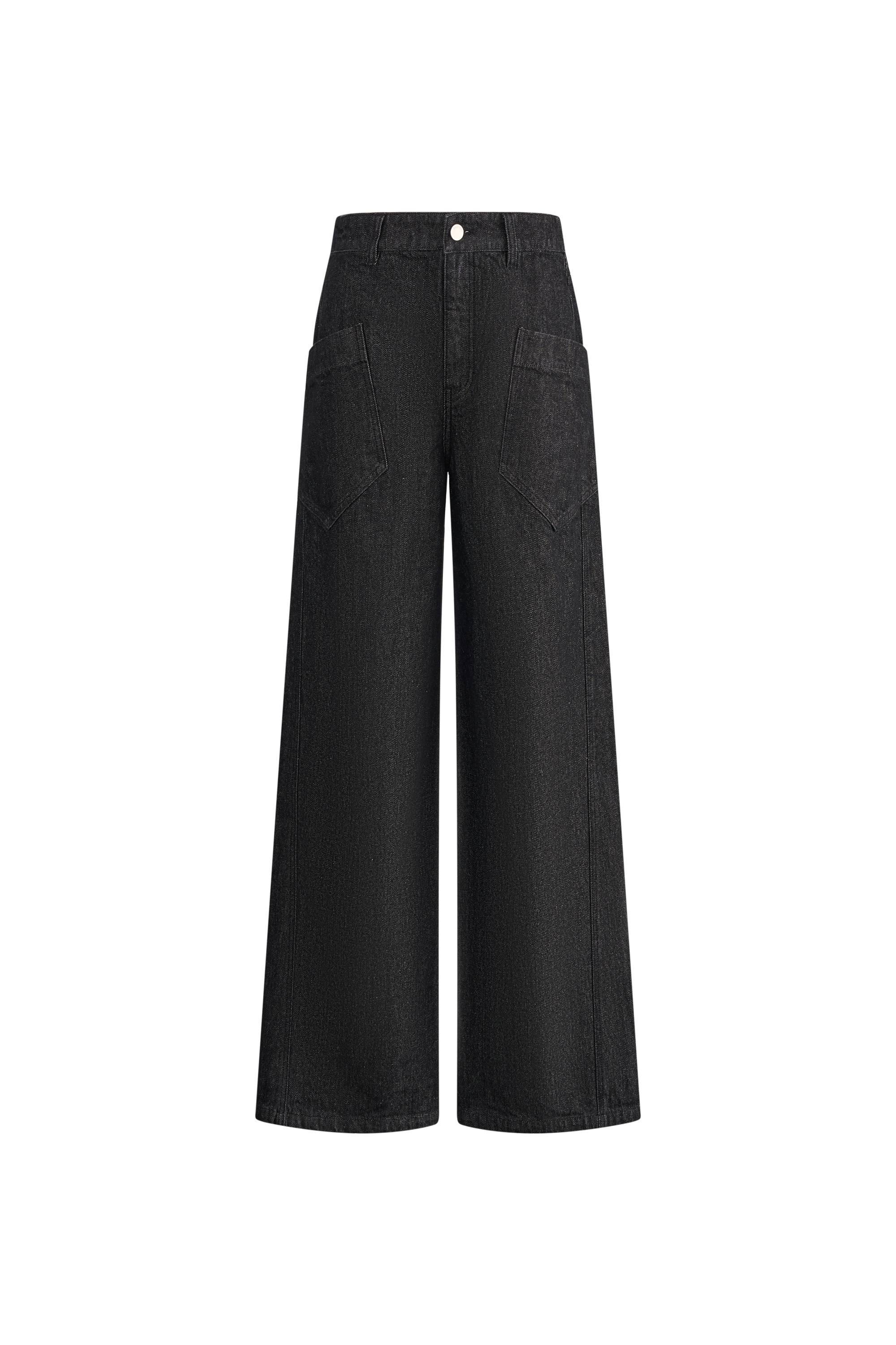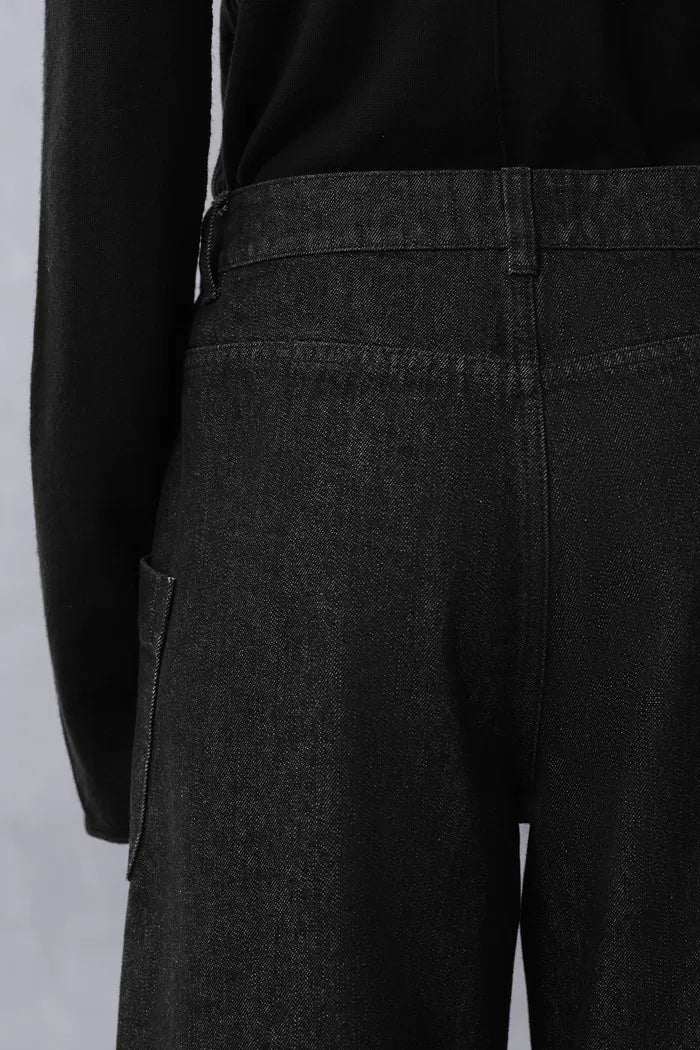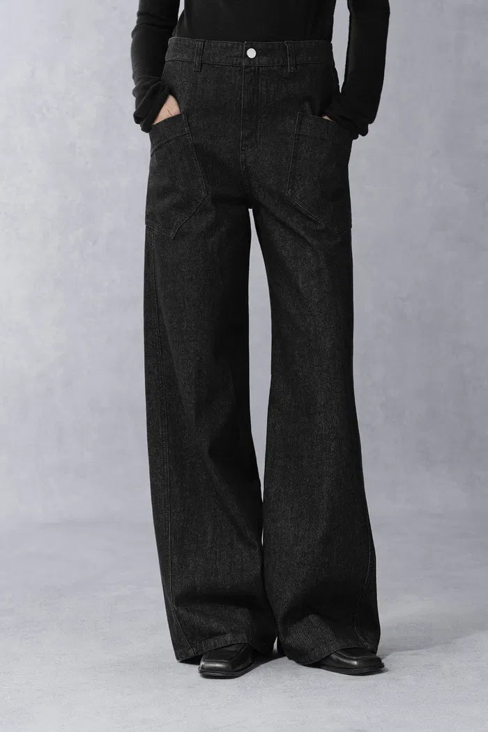 Junon Tilted Pocket Wide Straight Jeans in Cotton Denim