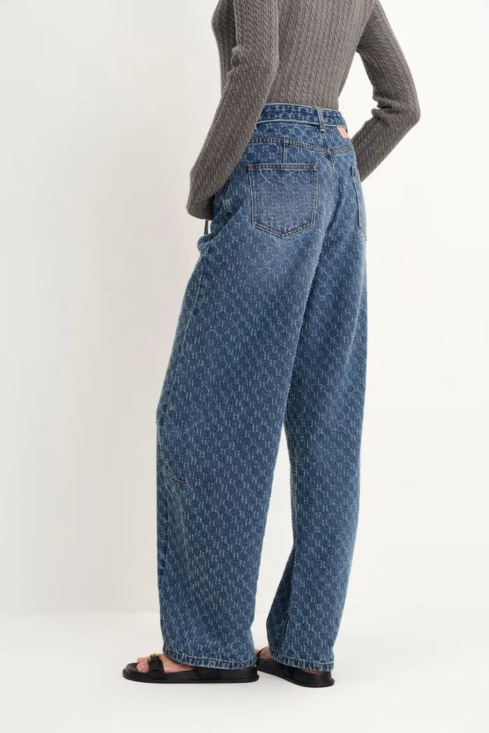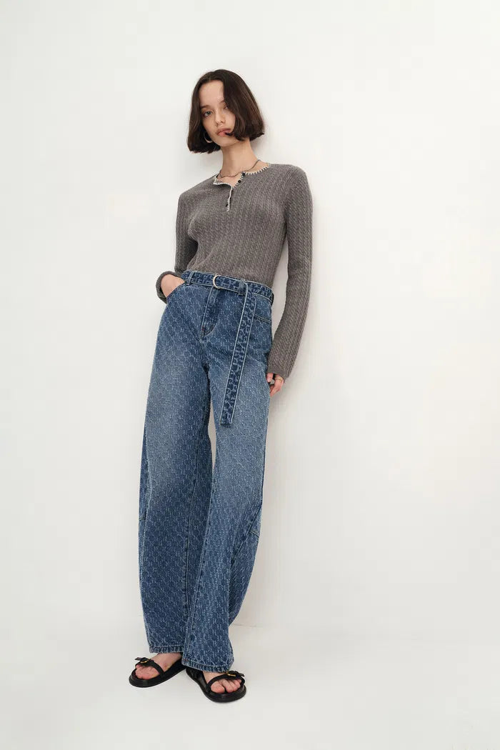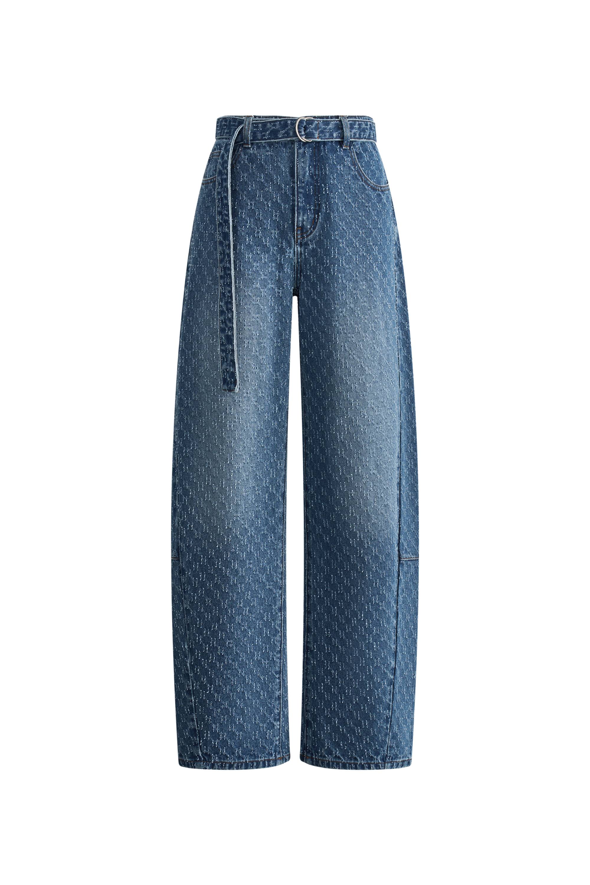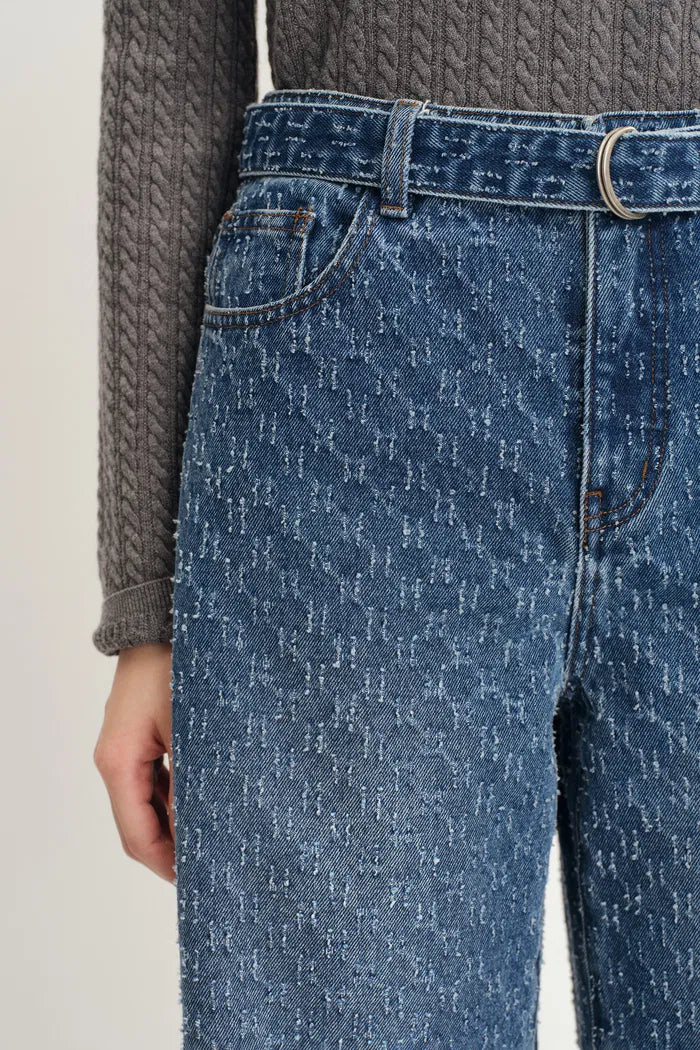 Skylar Belted Textured Gradient Jeans in Jacquard Cotton Denim