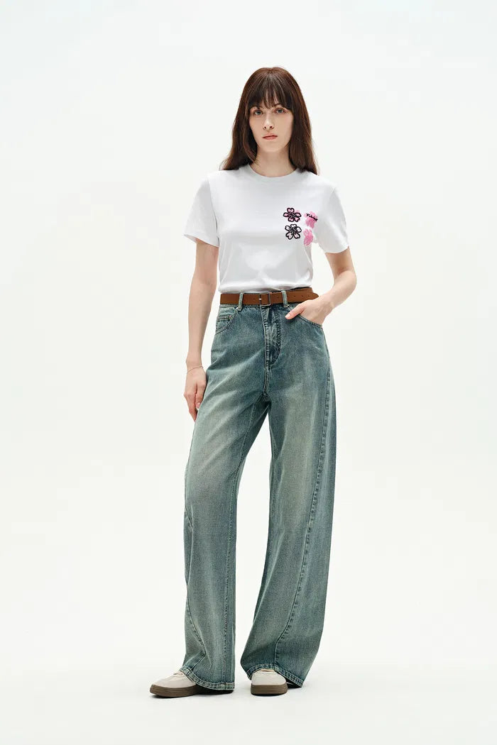 Thais Wide Leg Jeans in Lightweight Cotton Denim