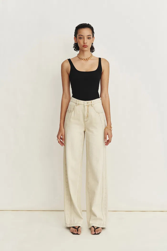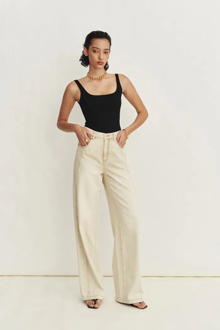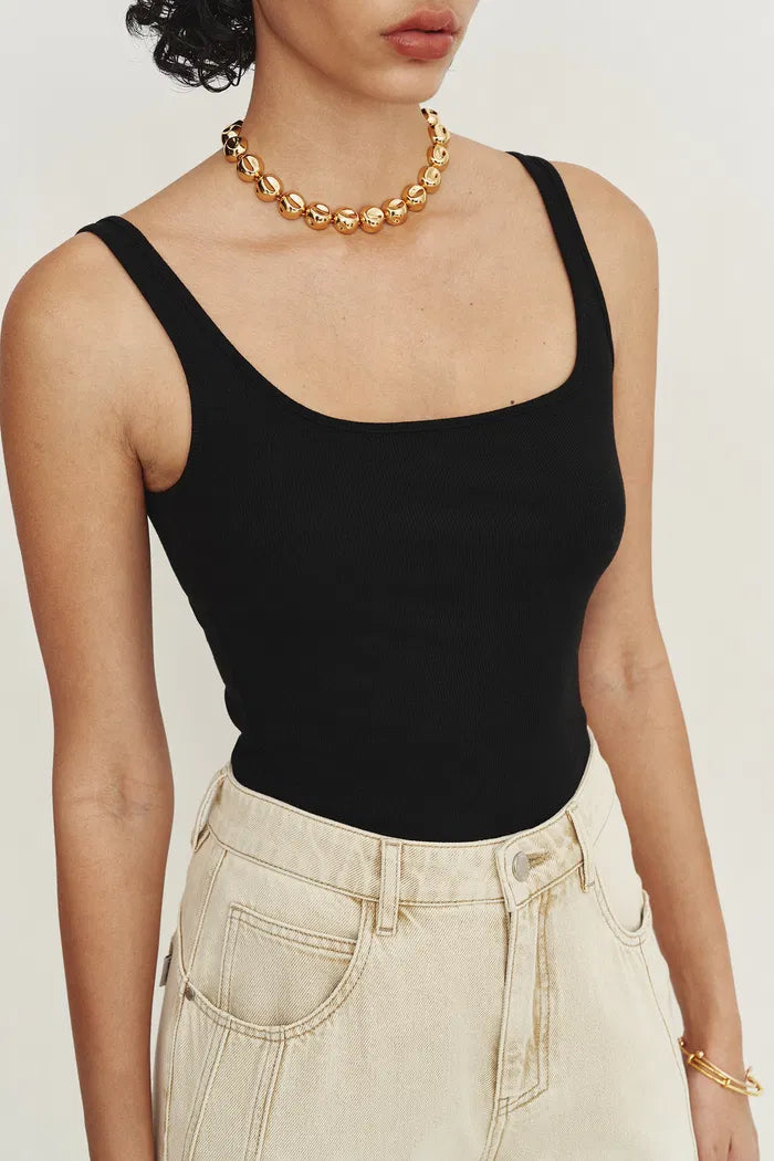 Liz Square Neck Body Con Sleeveless Tank Top in High-Stretch Ribbed Knit