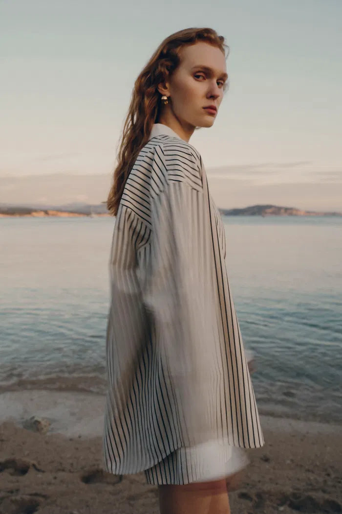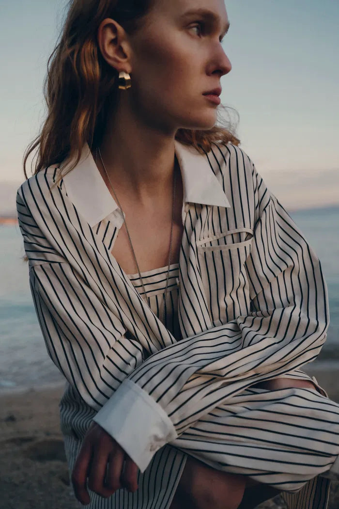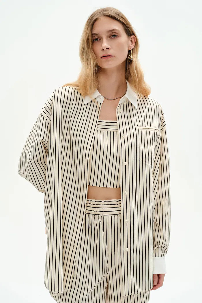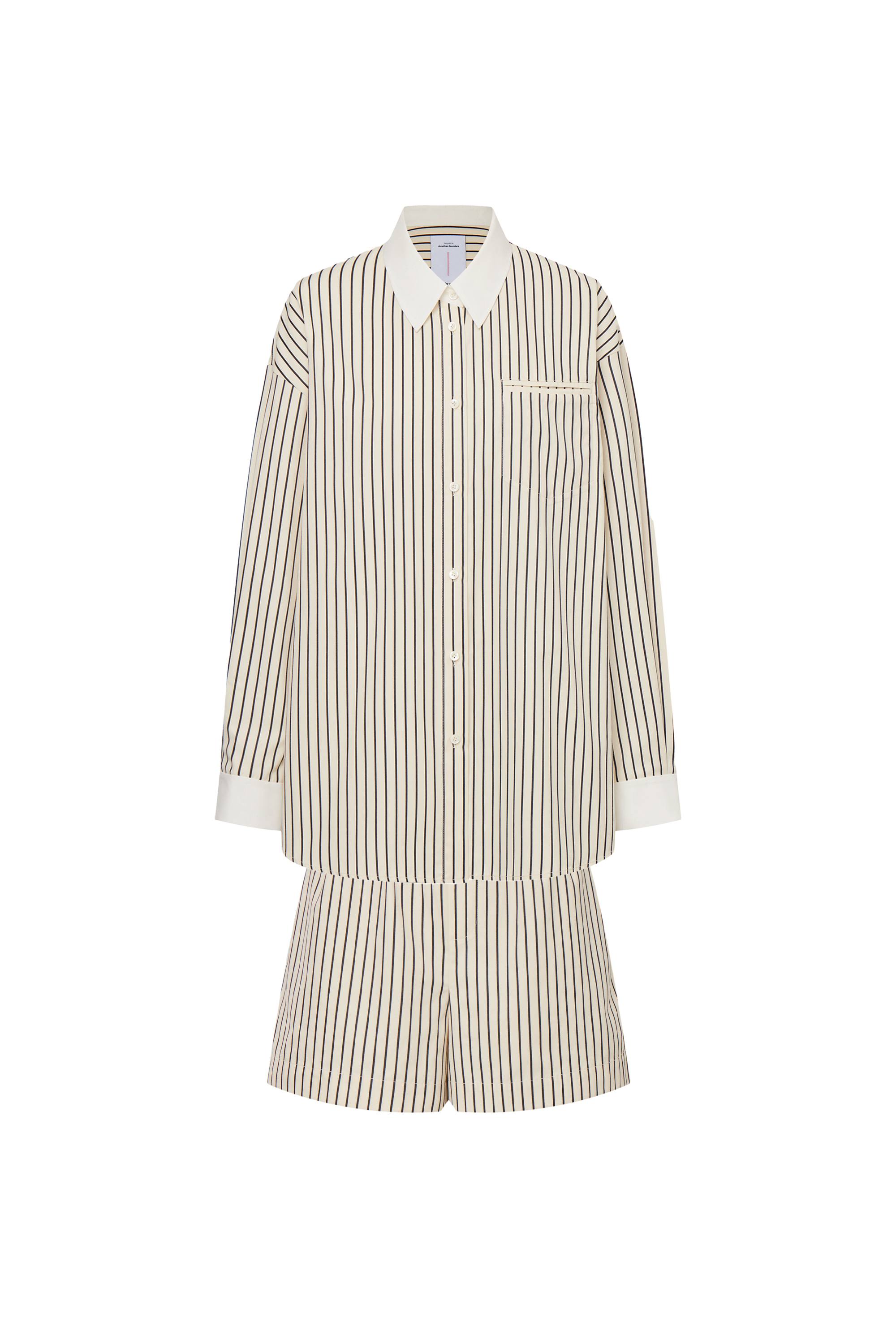 Nao Casual Striped Shirt and Shorts Matching Set in Cotton Poplin