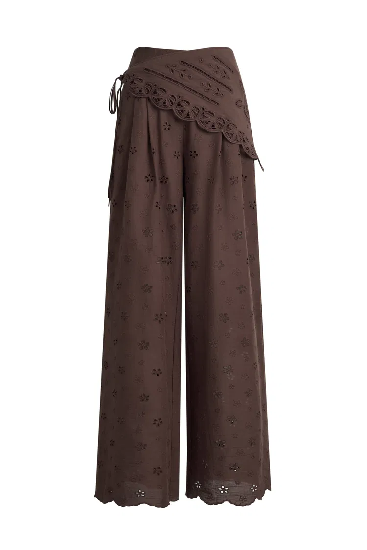 Nina Embroidered Scraf Wrap Pants in Cotton