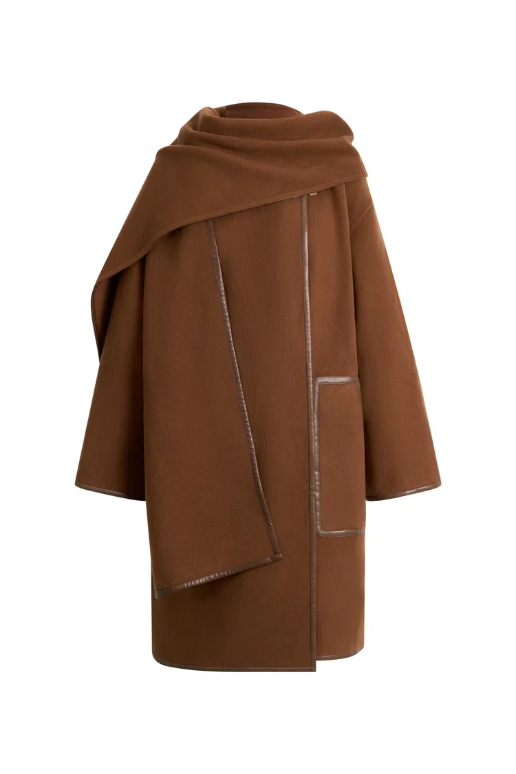 Selian Detachable Scarf Coat in Double-Face Merino Wool