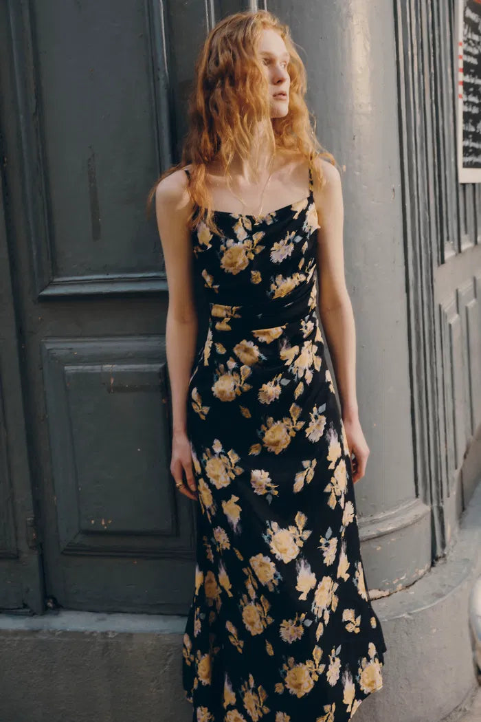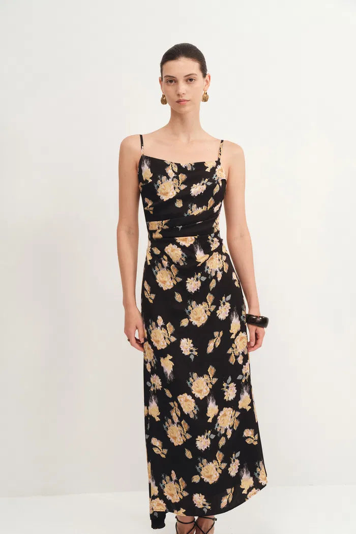 Vivian Flora Strap Dress in 22MM Mulberry Silk